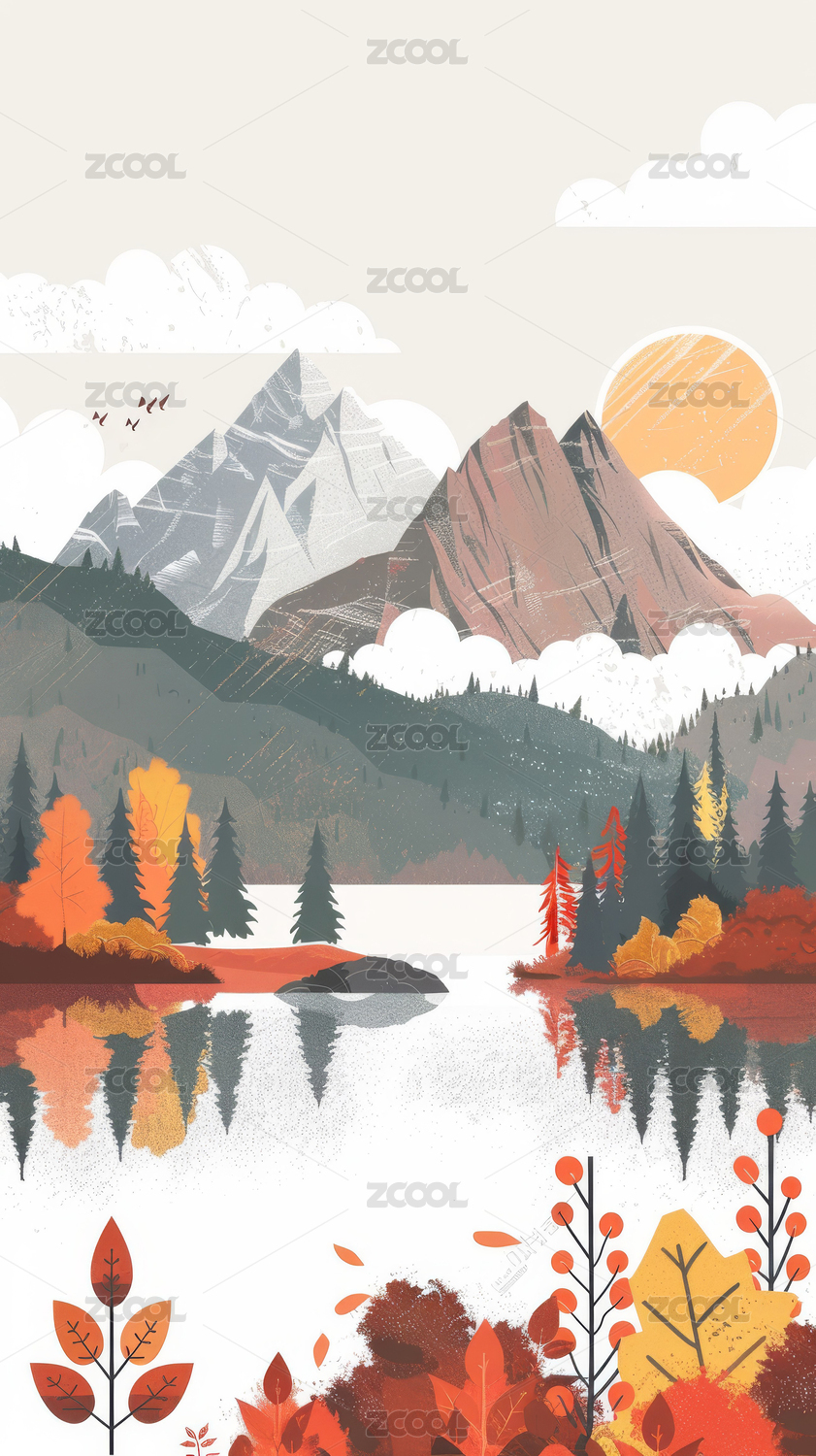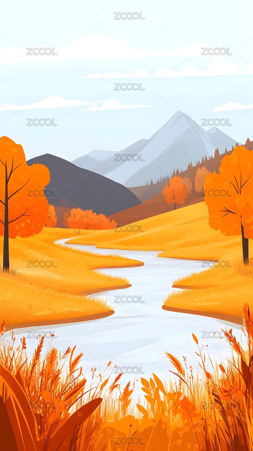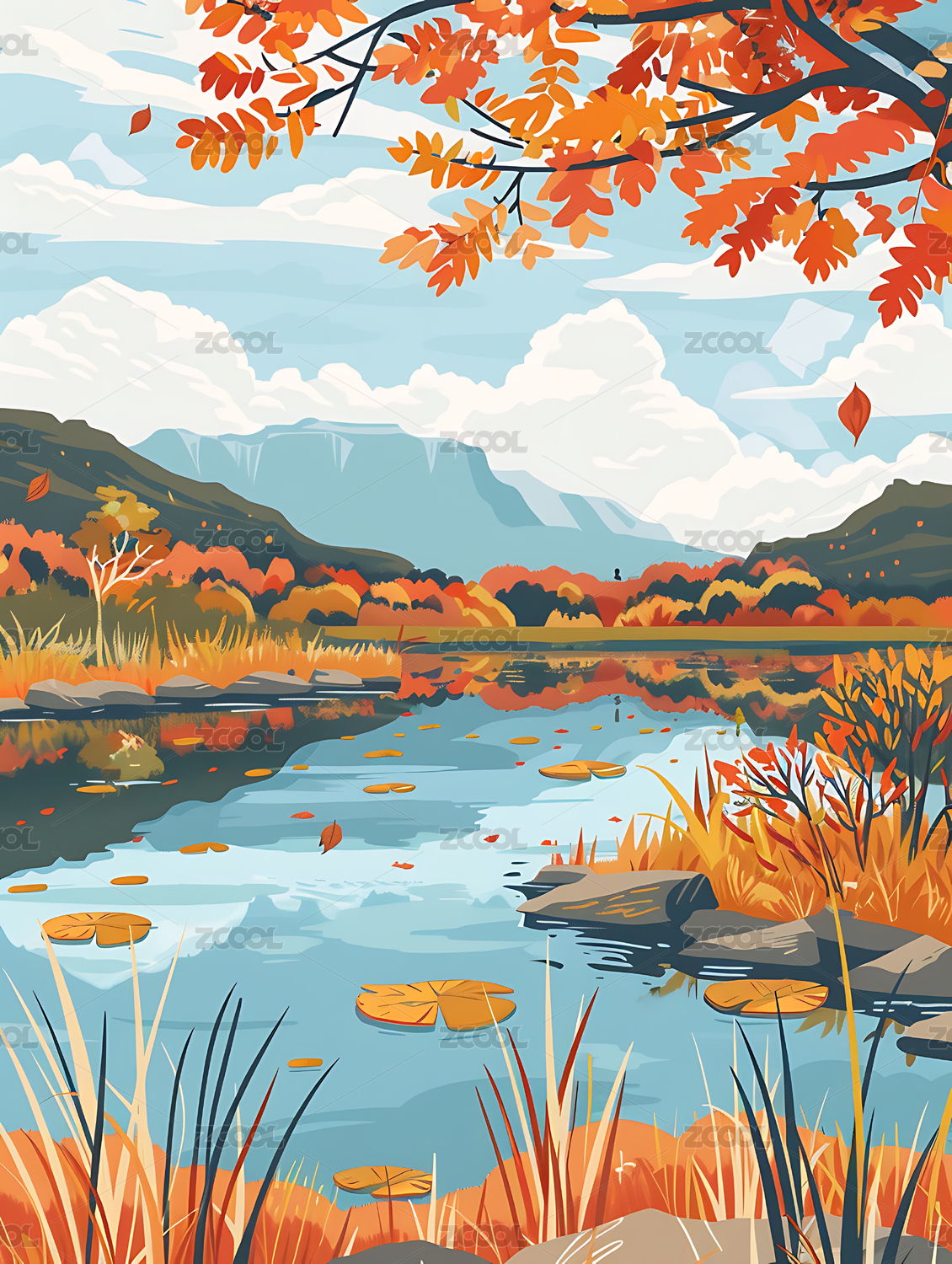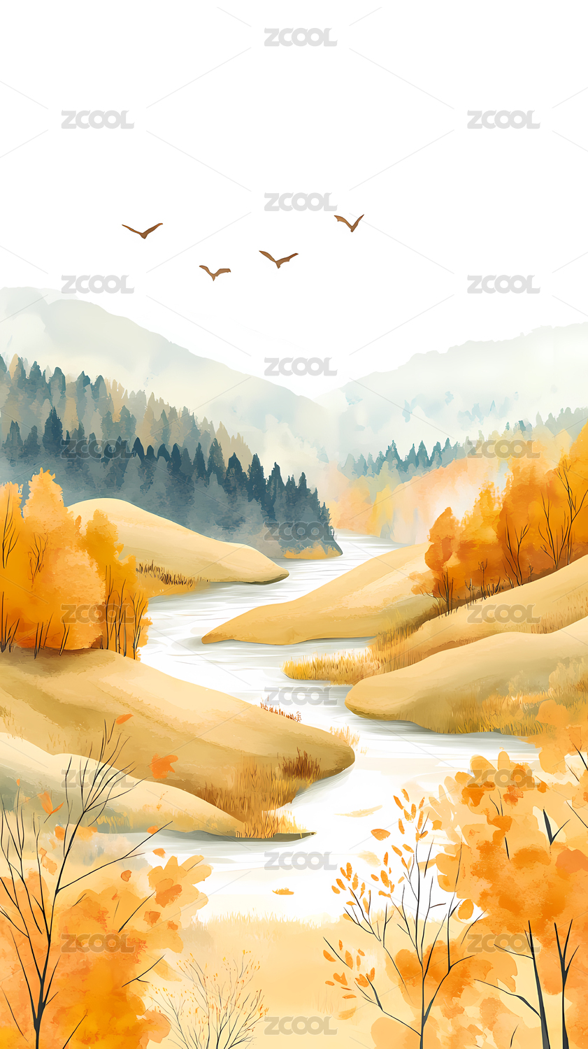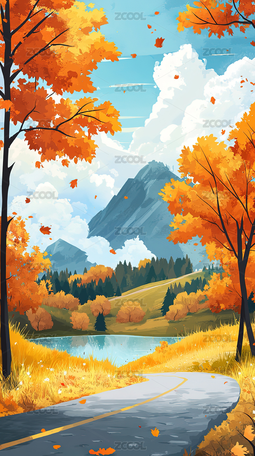 AIGC202402,扁平,水彩,秋天,写意,户外,风景