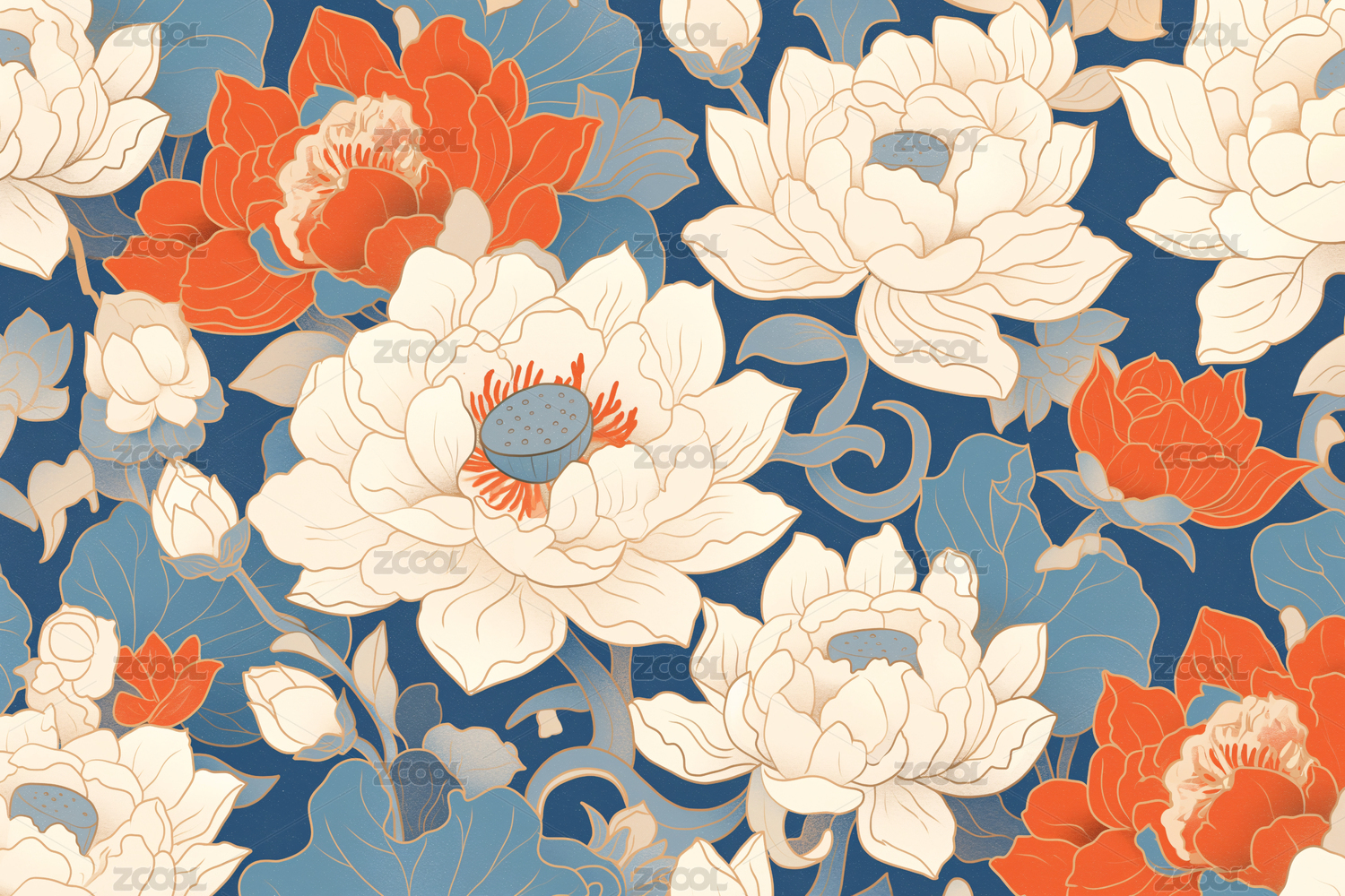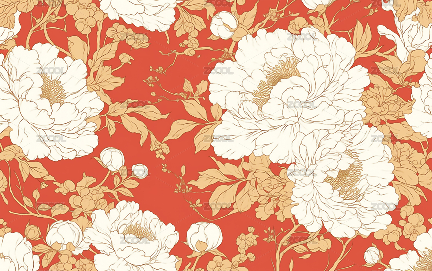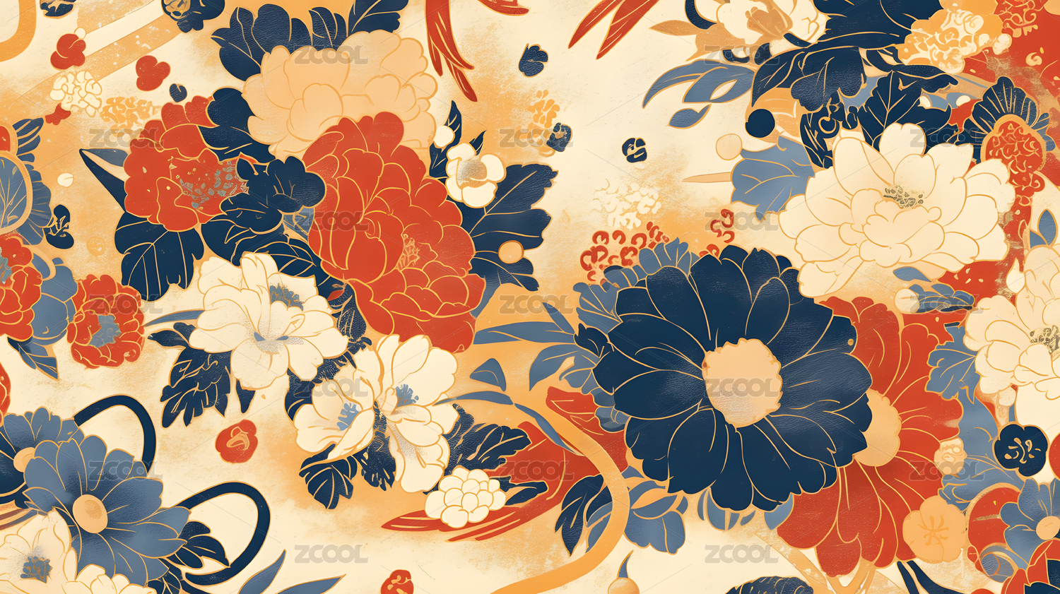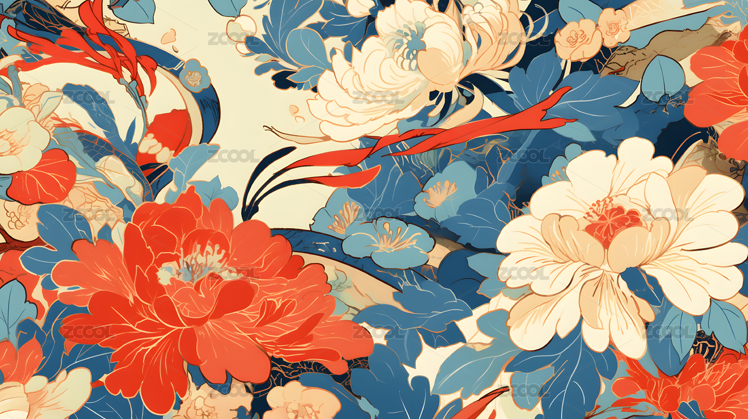 AIGCFG,国潮,背景,复古,工笔,写意,花,植物,动物,彩色