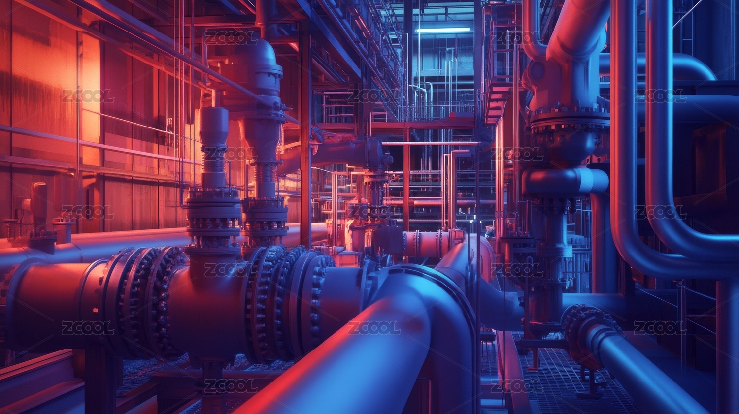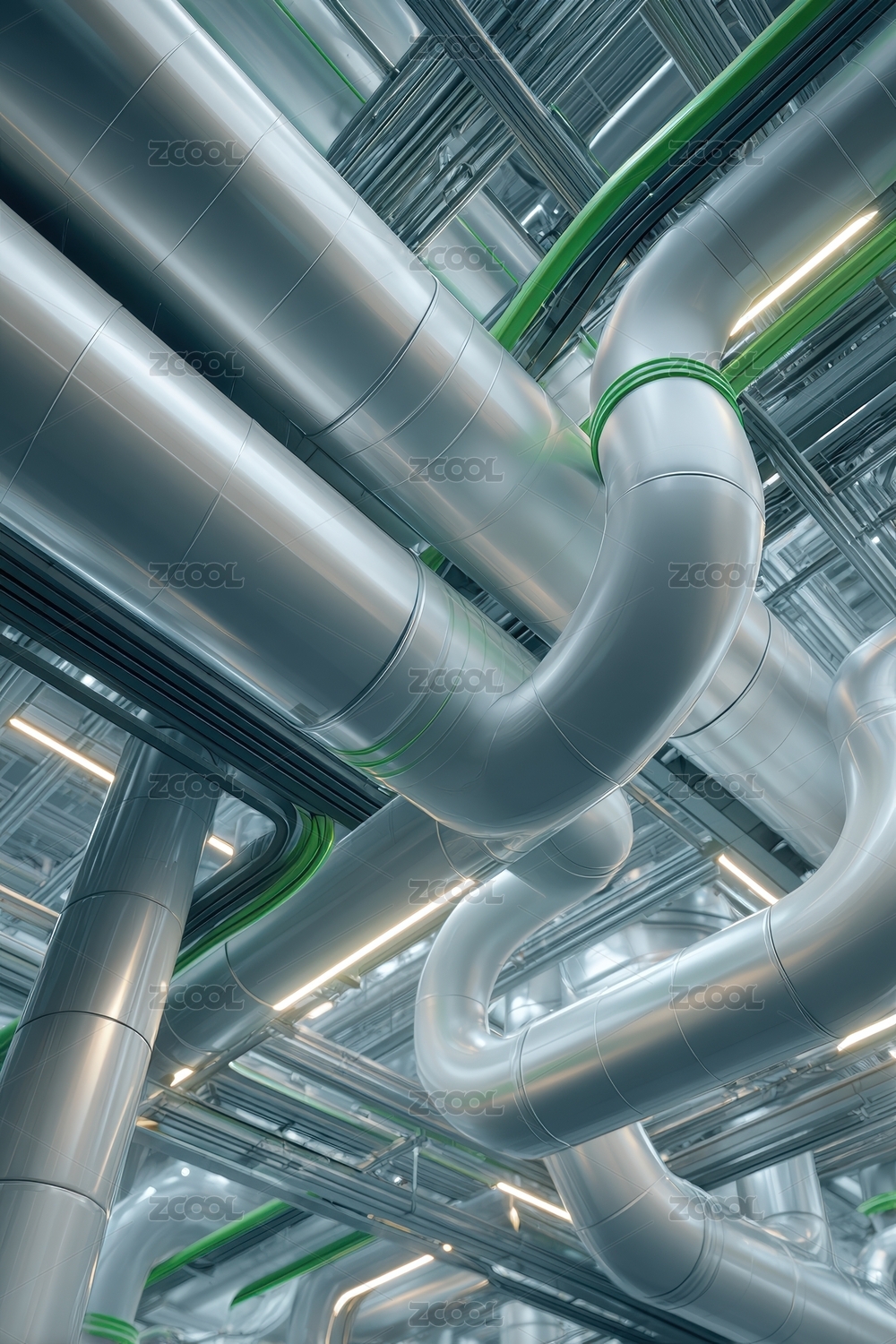 工业管道交错纵横的机械空间