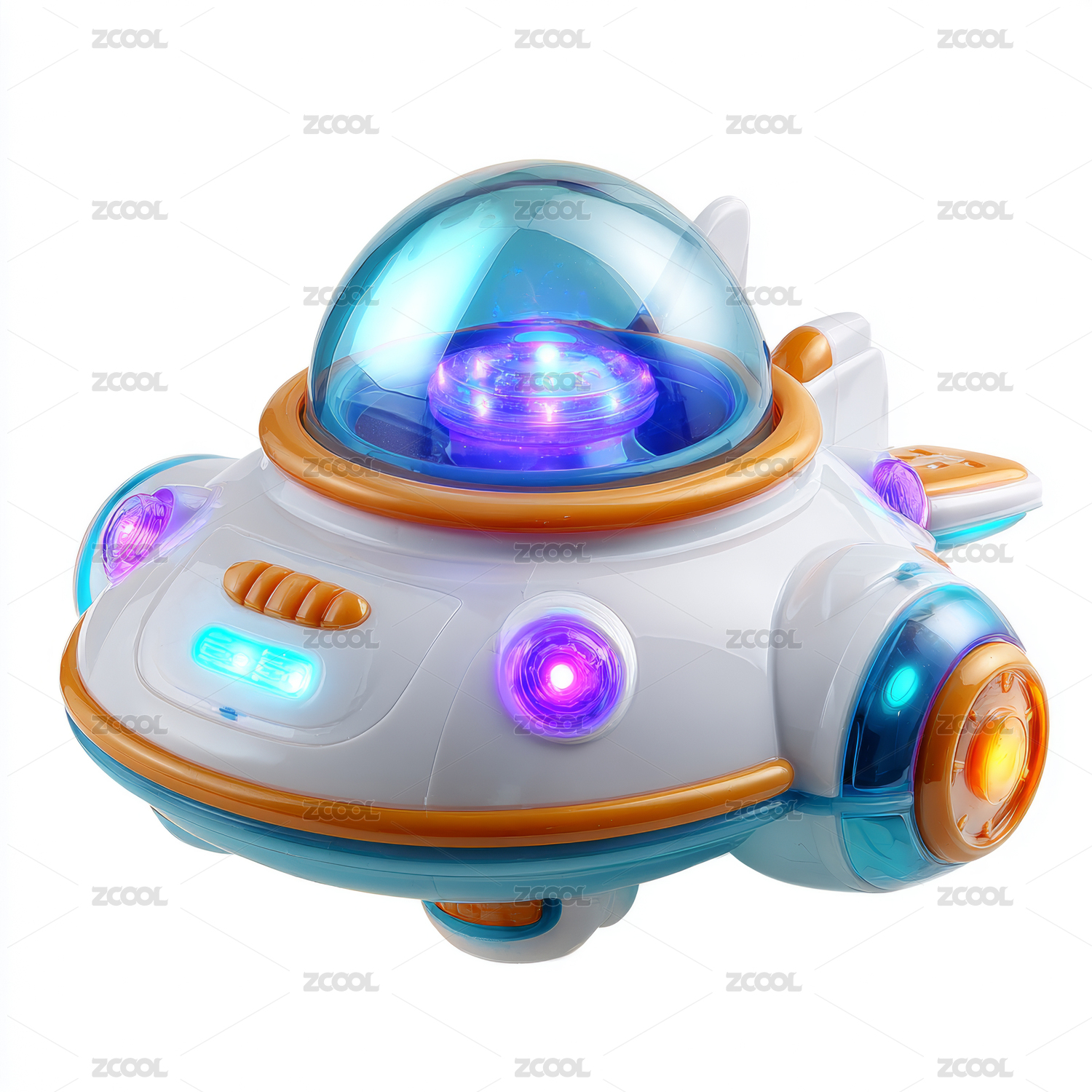 色背景前带有彩色灯光的UFO玩具