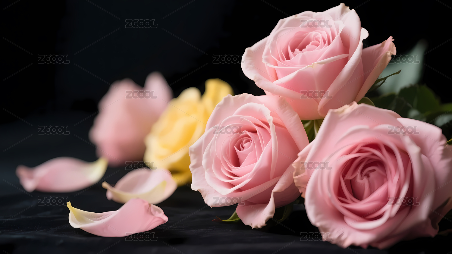 粉色玫瑰与黑色背景