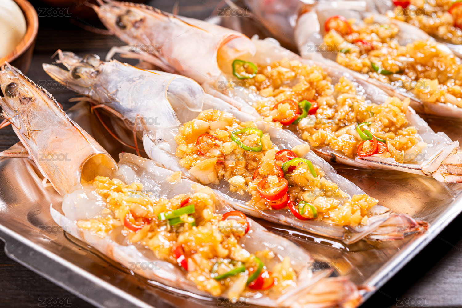 蒜蓉,虾,虾肉,虾壳,蒸熟,家常菜,盘子,海鲜,海产,葱花