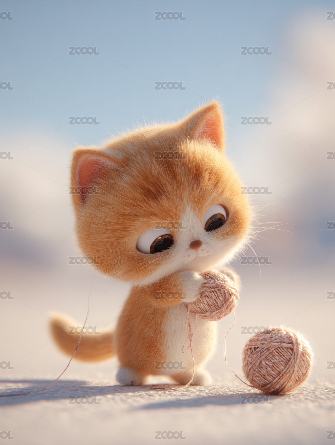 3d毛毡风格动物可爱卡通小猫咪玩毛线球