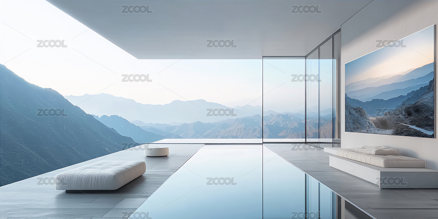 落地窗,沙发,舒适,宁静,简约,家居,空间,现代,优雅,极简
