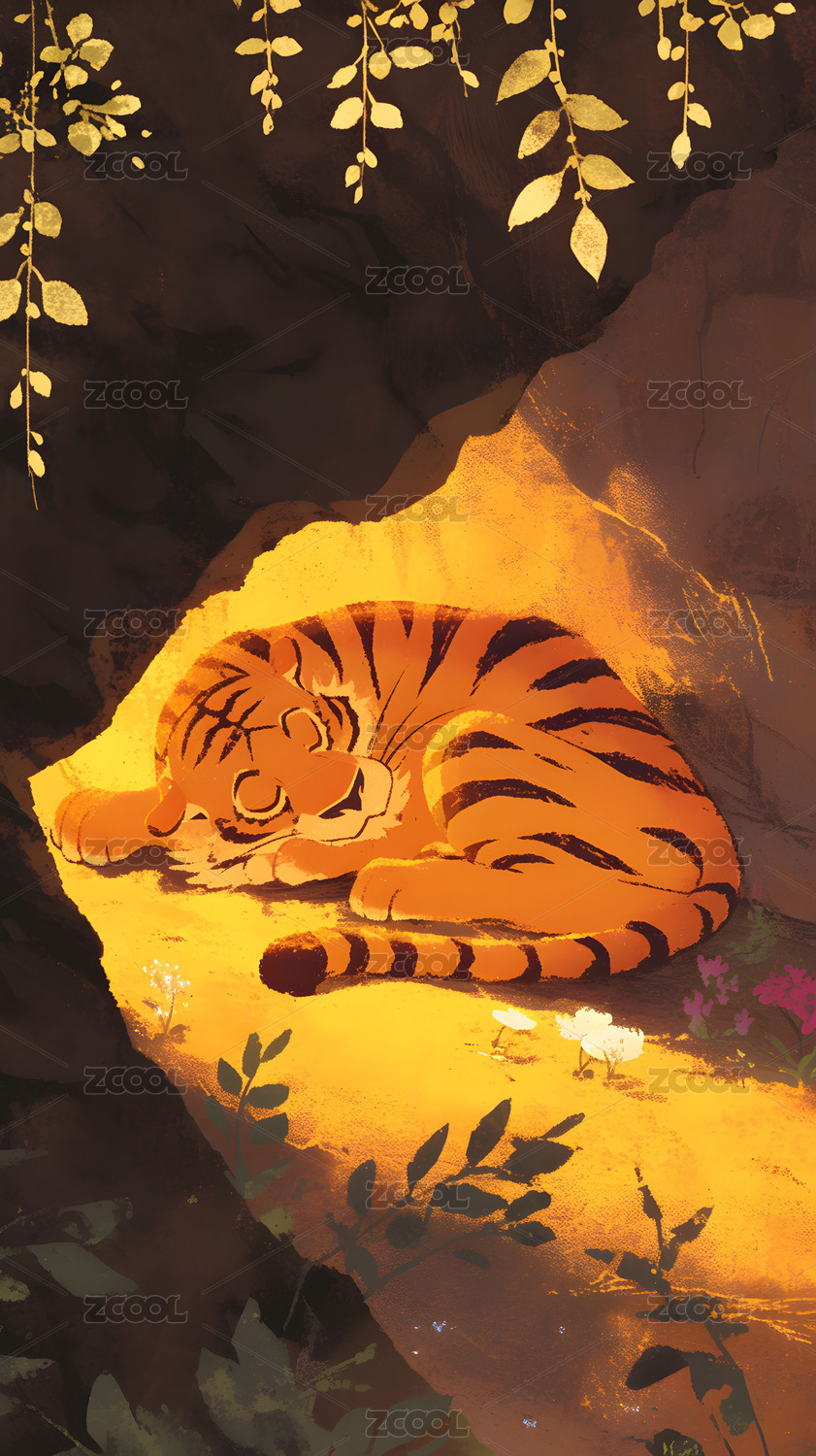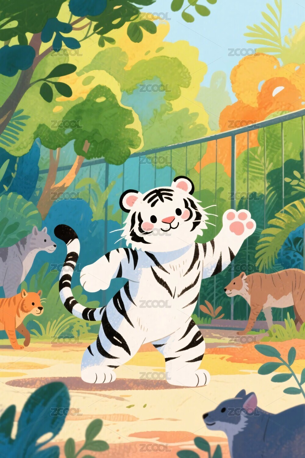 老虎,小鸟,动物,商业插画,室内场景,下象棋,椅子,植物