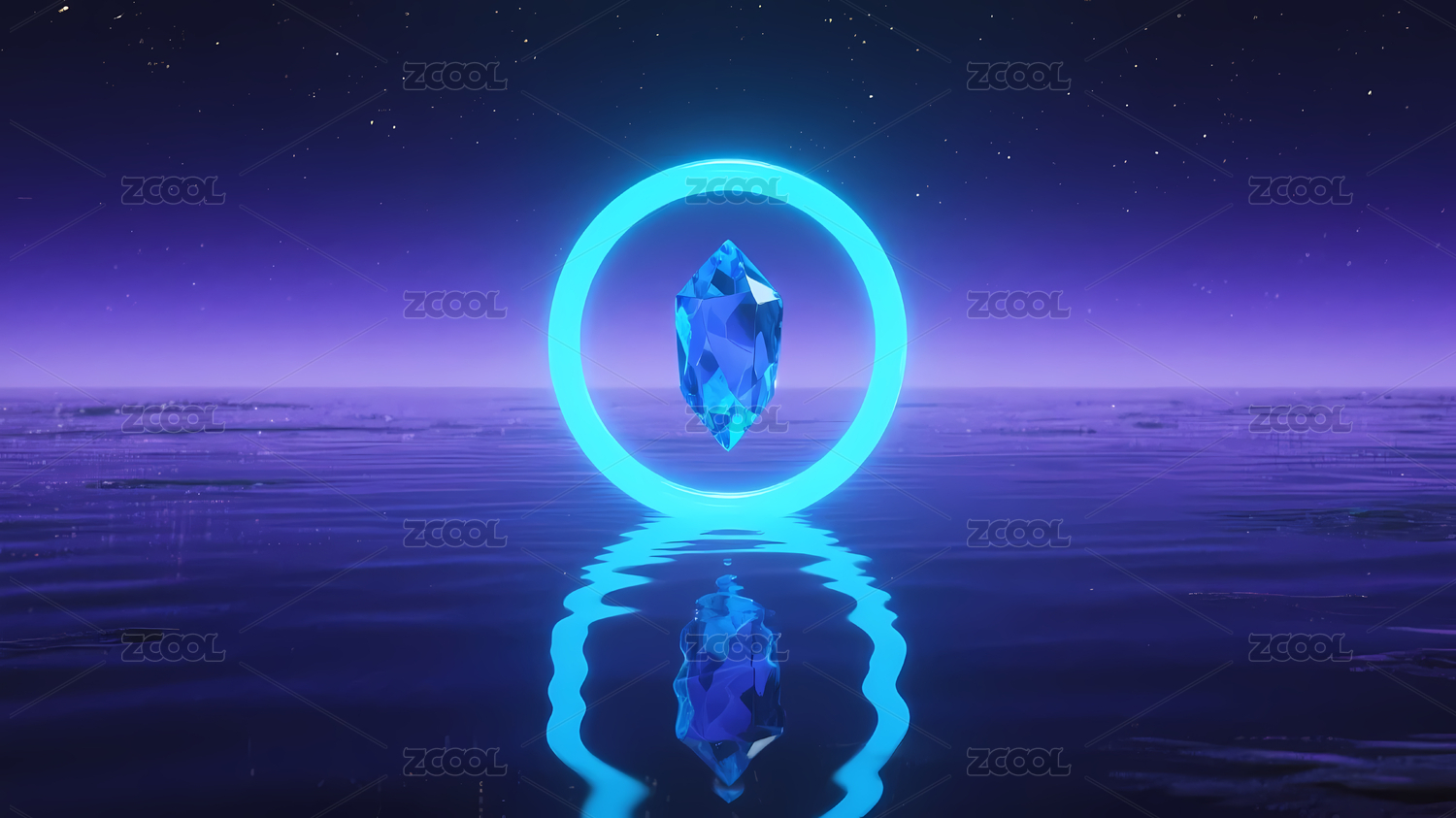蓝光宝石与水面