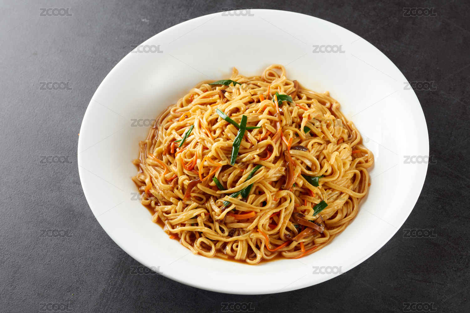 盘子里的炒面条