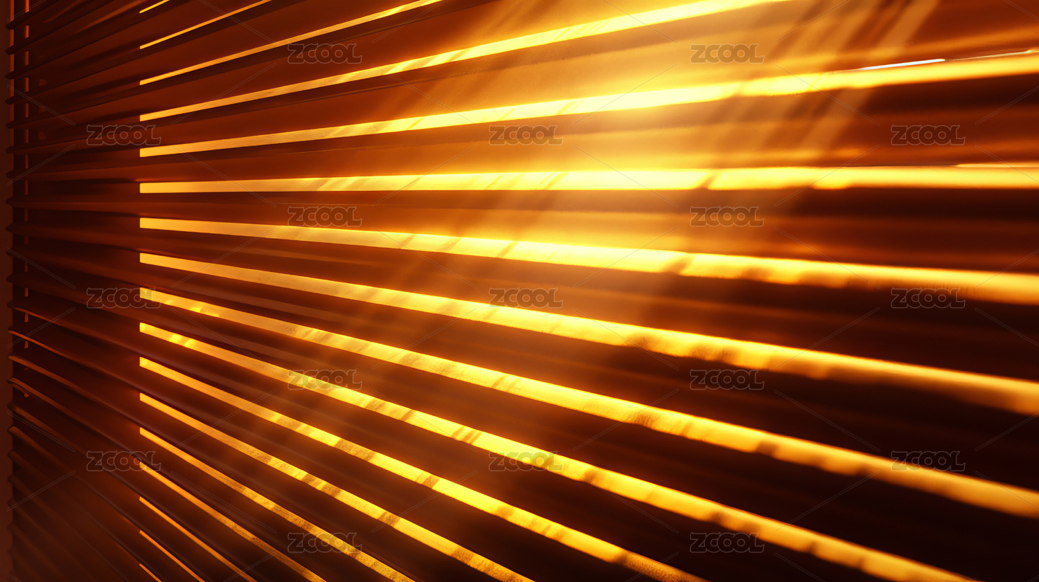 金色阳光透过百叶窗