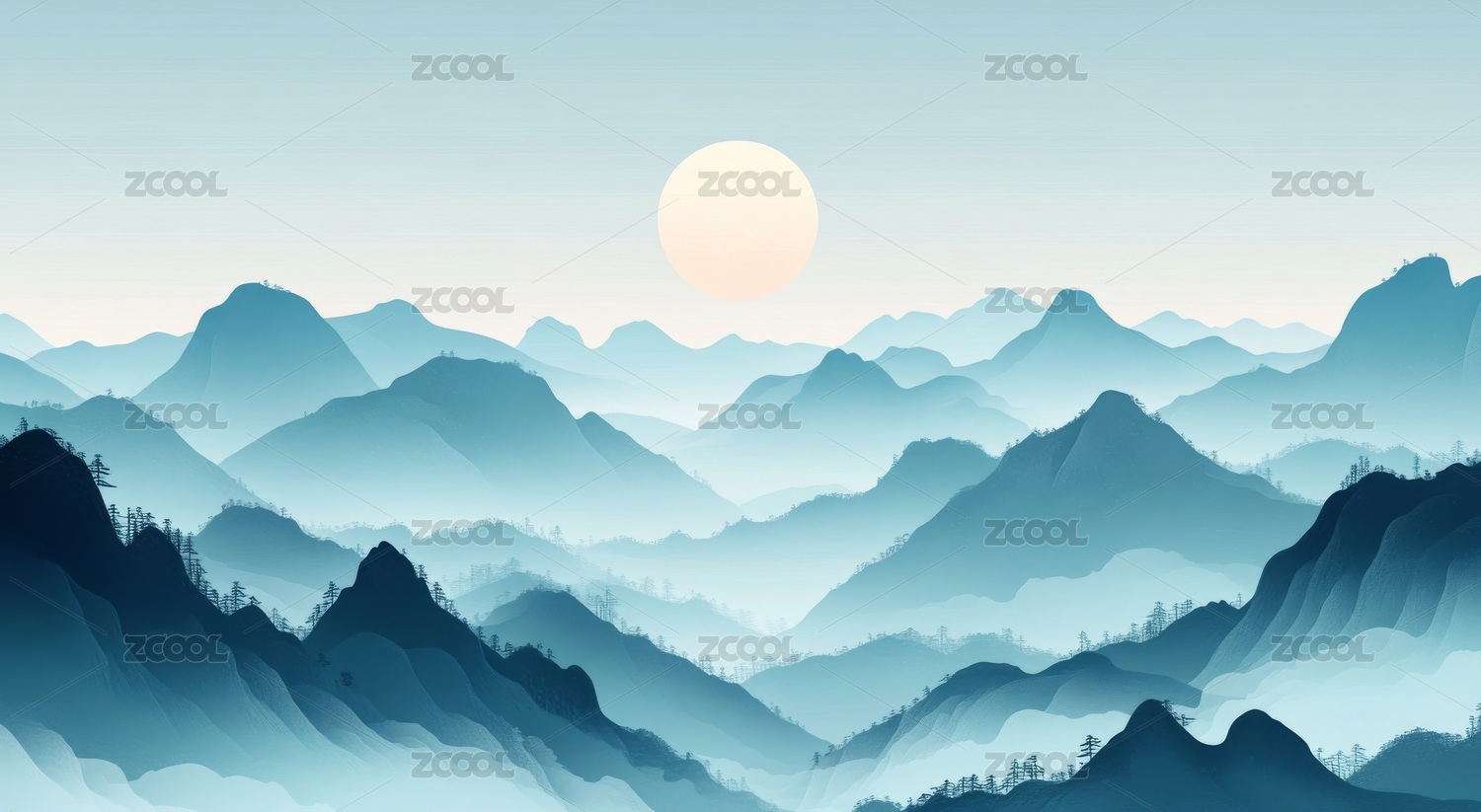 中国风青山意境插画背景