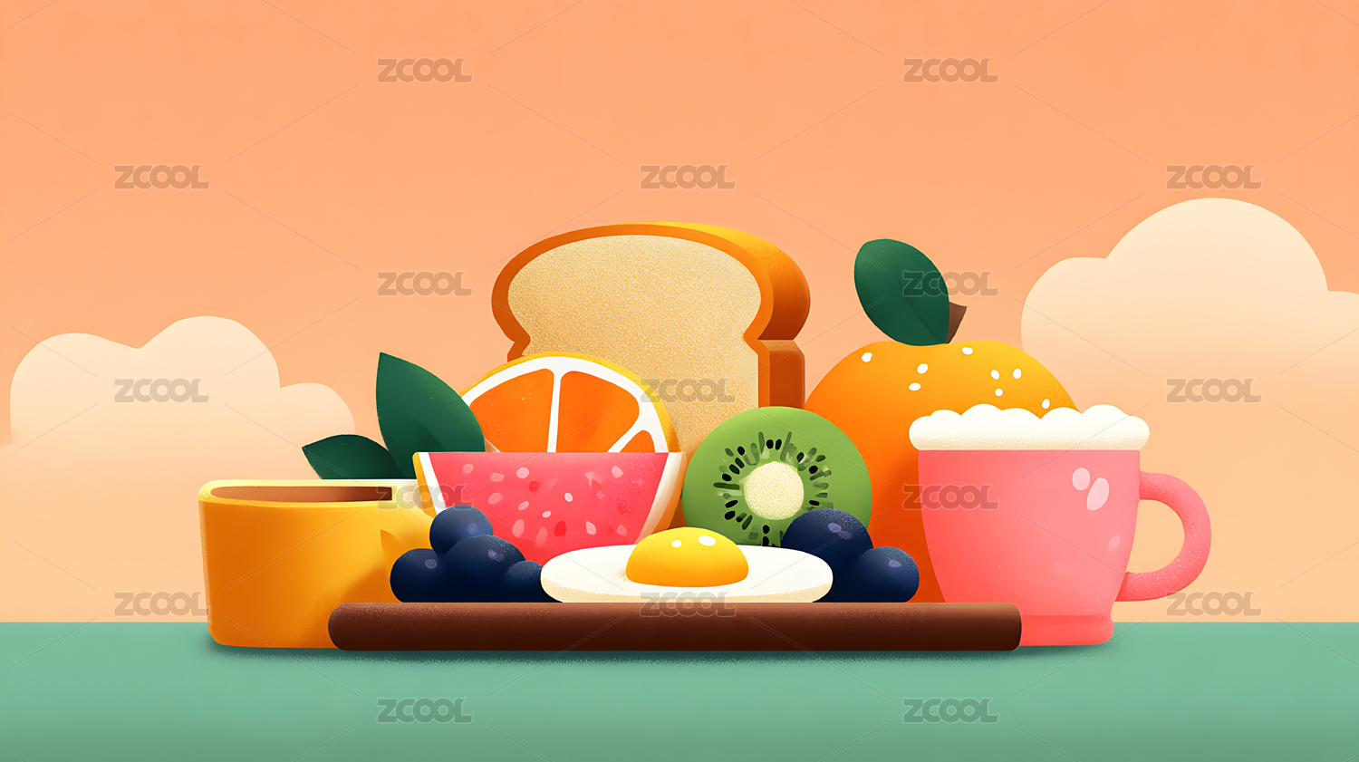 健康早餐美食沙拉俯视图健身餐鸡蛋面包插画