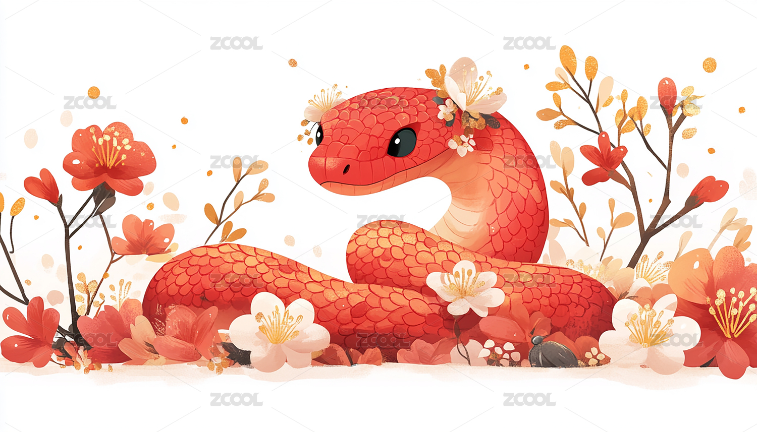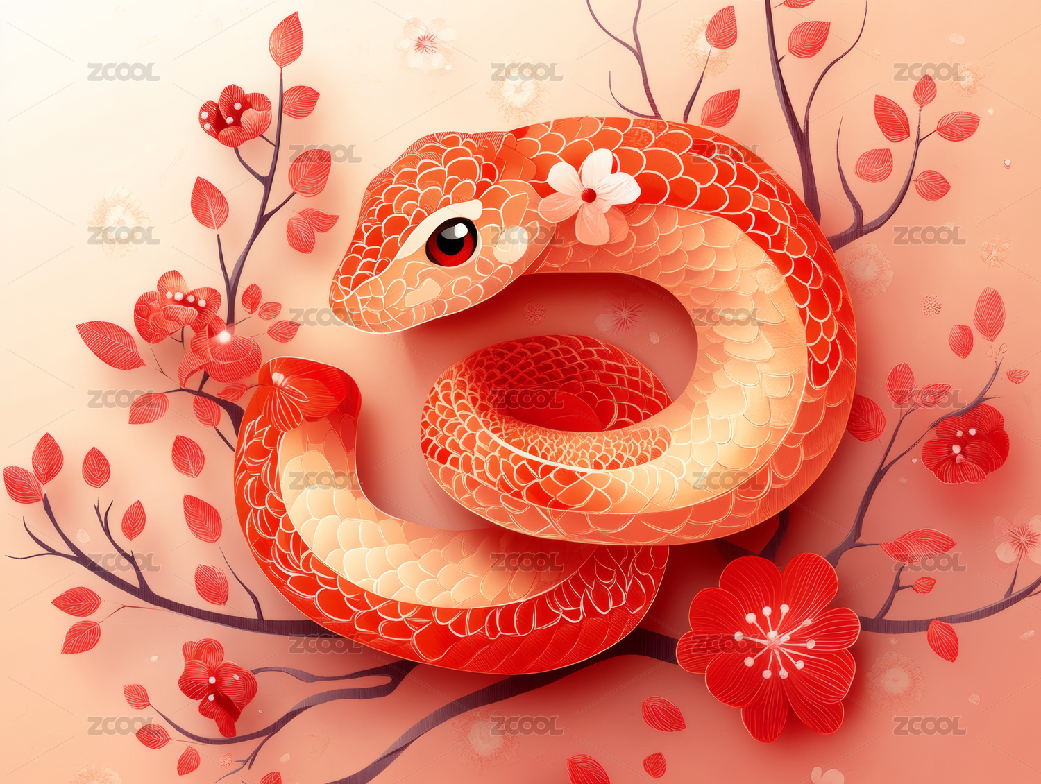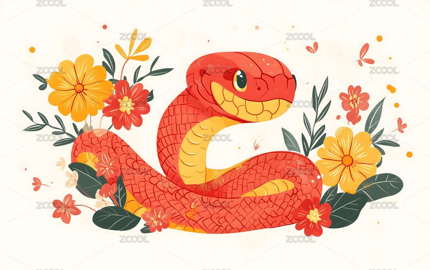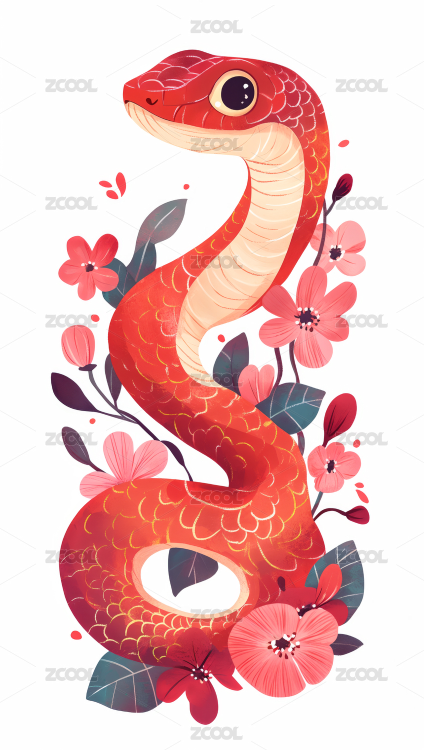 蛇年,生肖蛇,红色,蛇,卡通,动物,插画