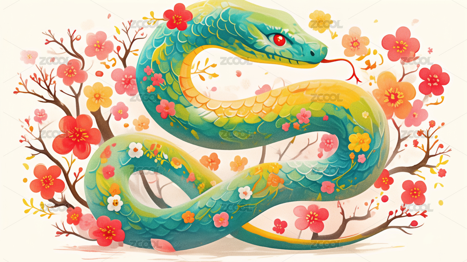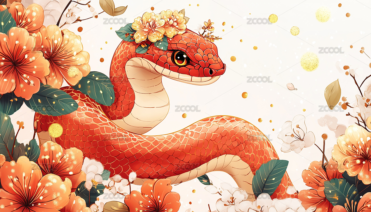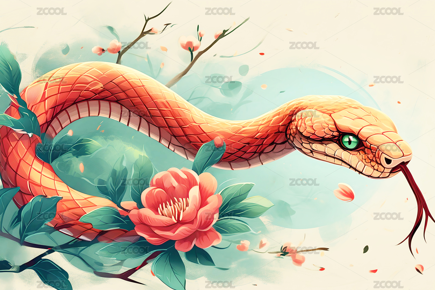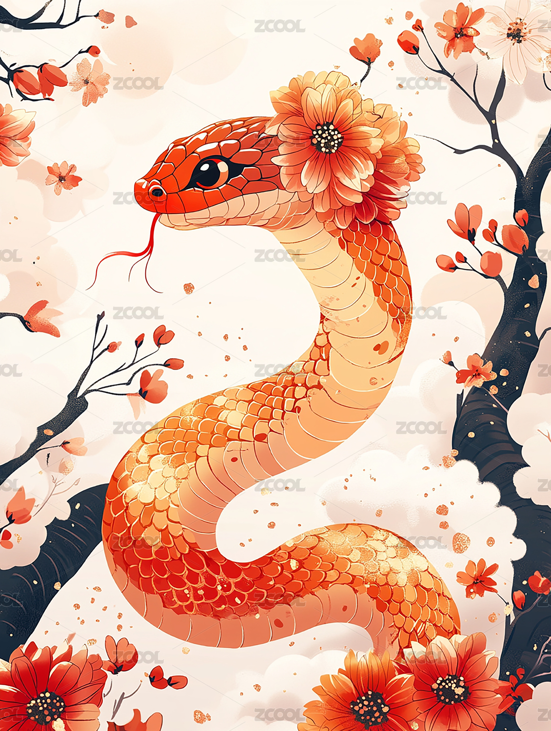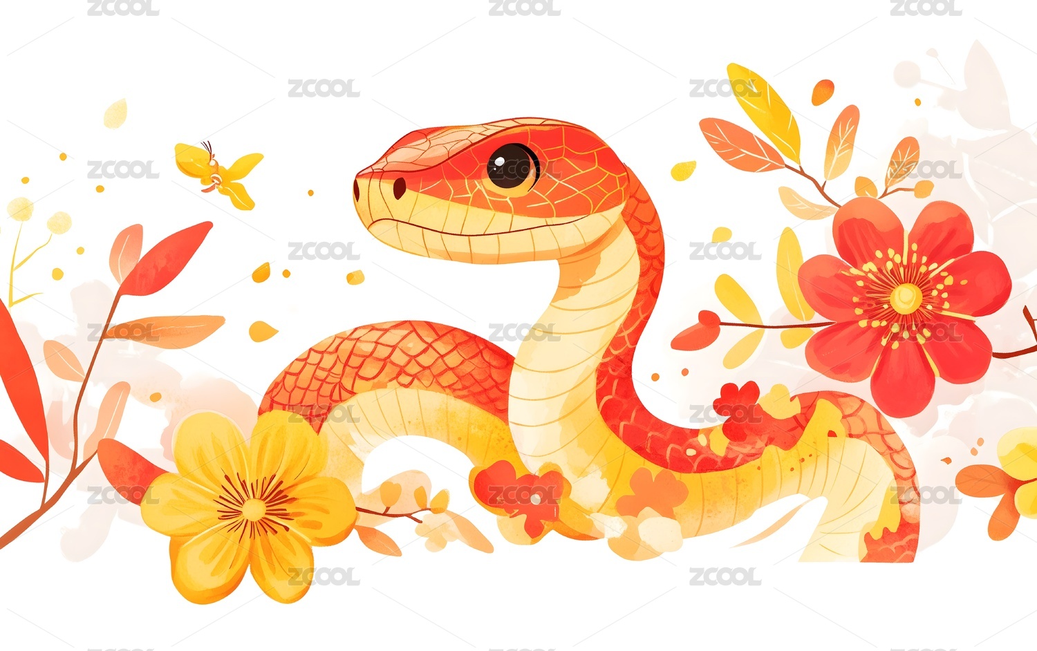 蛇年,生肖蛇,红色,蛇,卡通,动物,插画