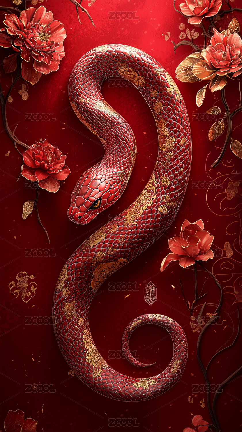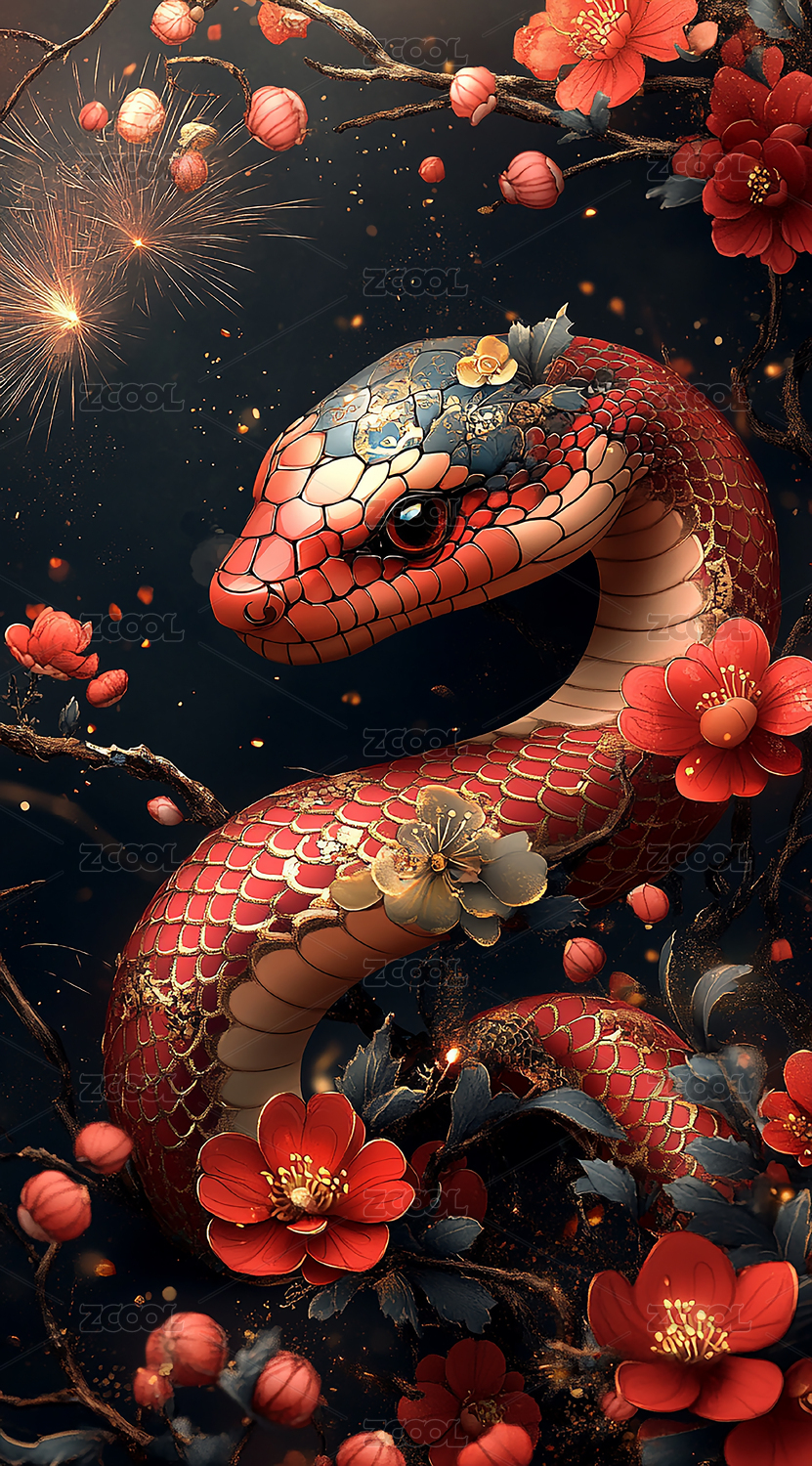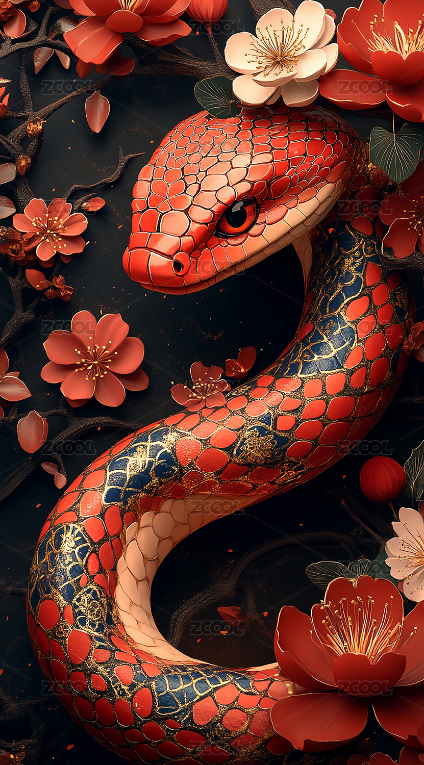 红色,背景,花朵,立体,小蛇,美丽,风景,花卉,蛇,生肖蛇