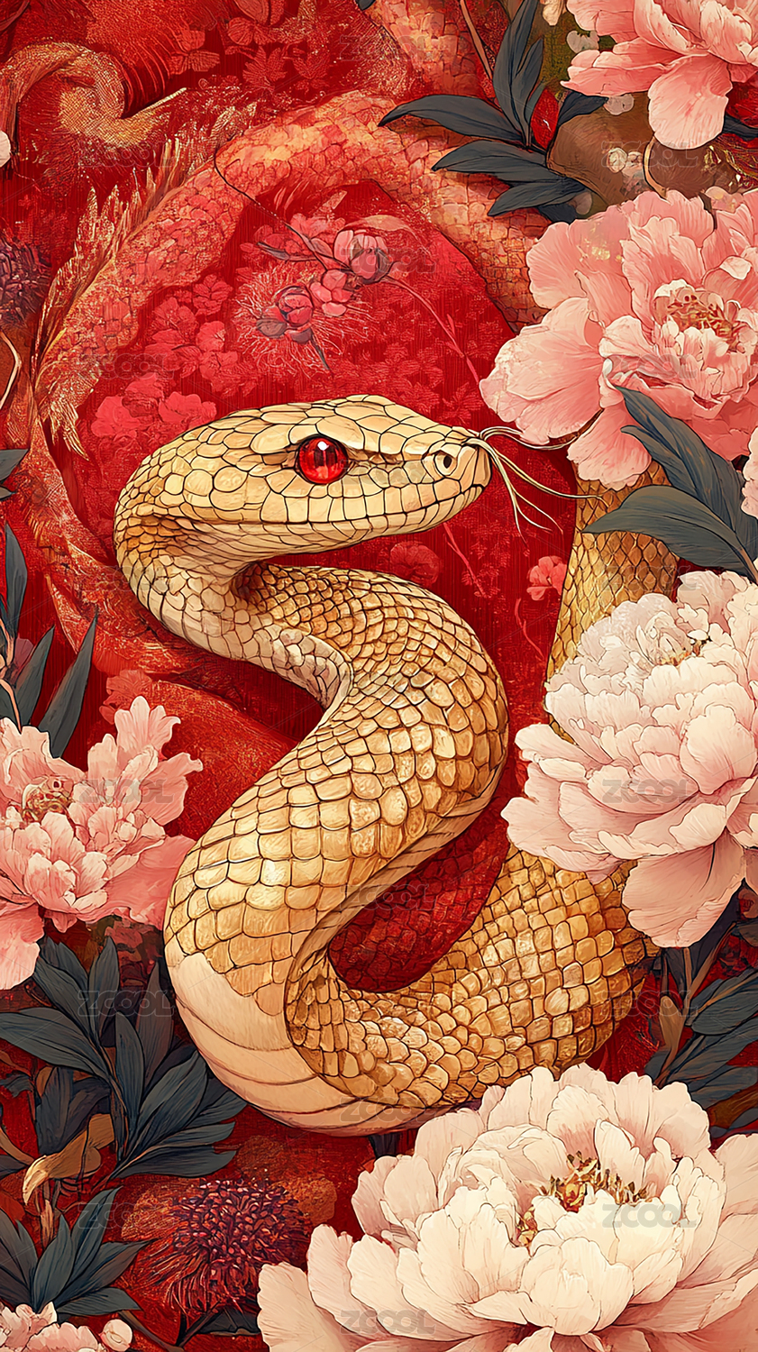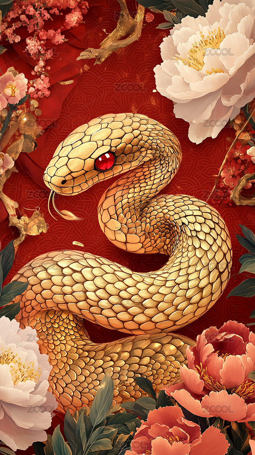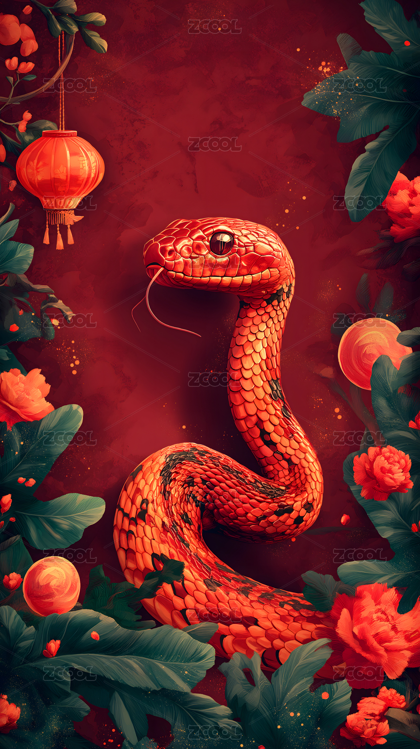红色,背景,花朵,立体,小蛇,美丽,风景,花卉,蛇,生肖蛇