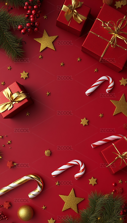 圣诞节红色背景礼物装饰