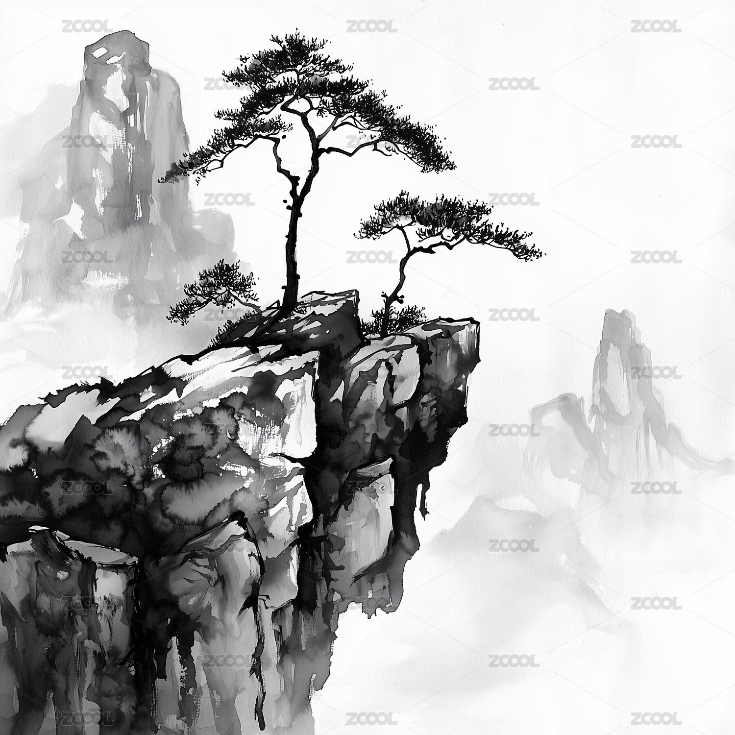 水墨画山水风景图