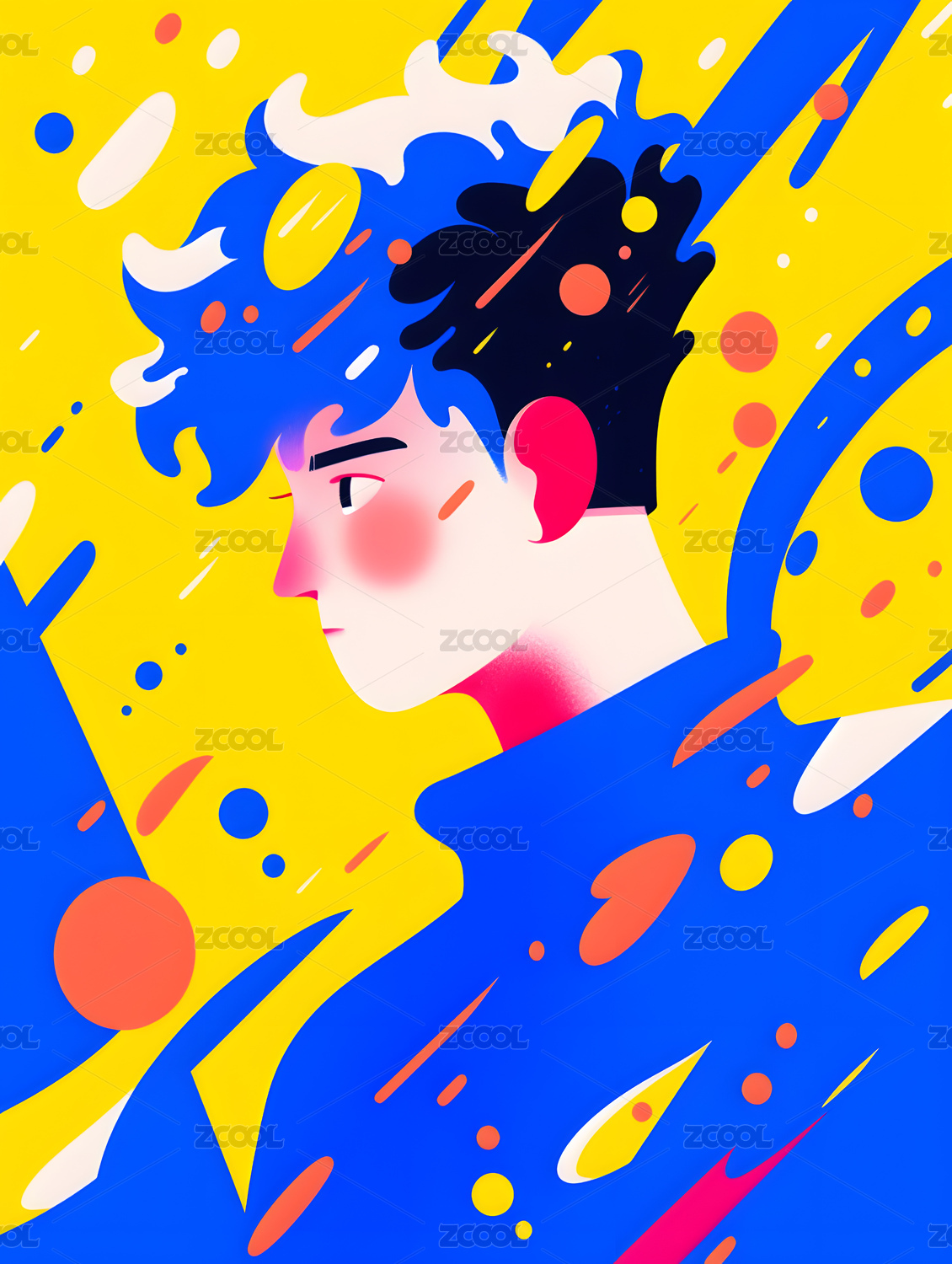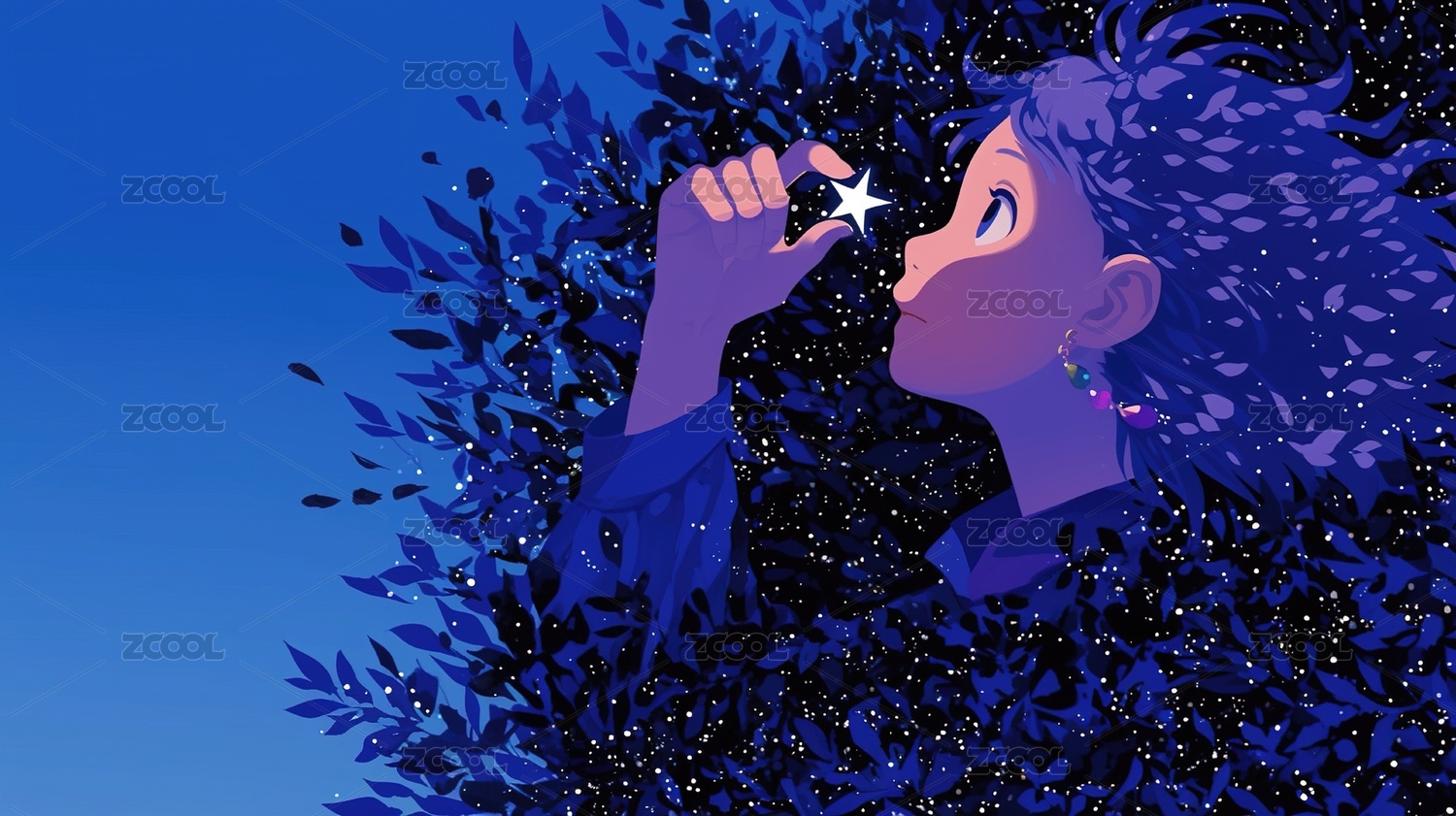插画,炫彩,渐变,潮流,时尚,紫色,蓝色,少年,叶子,夏天