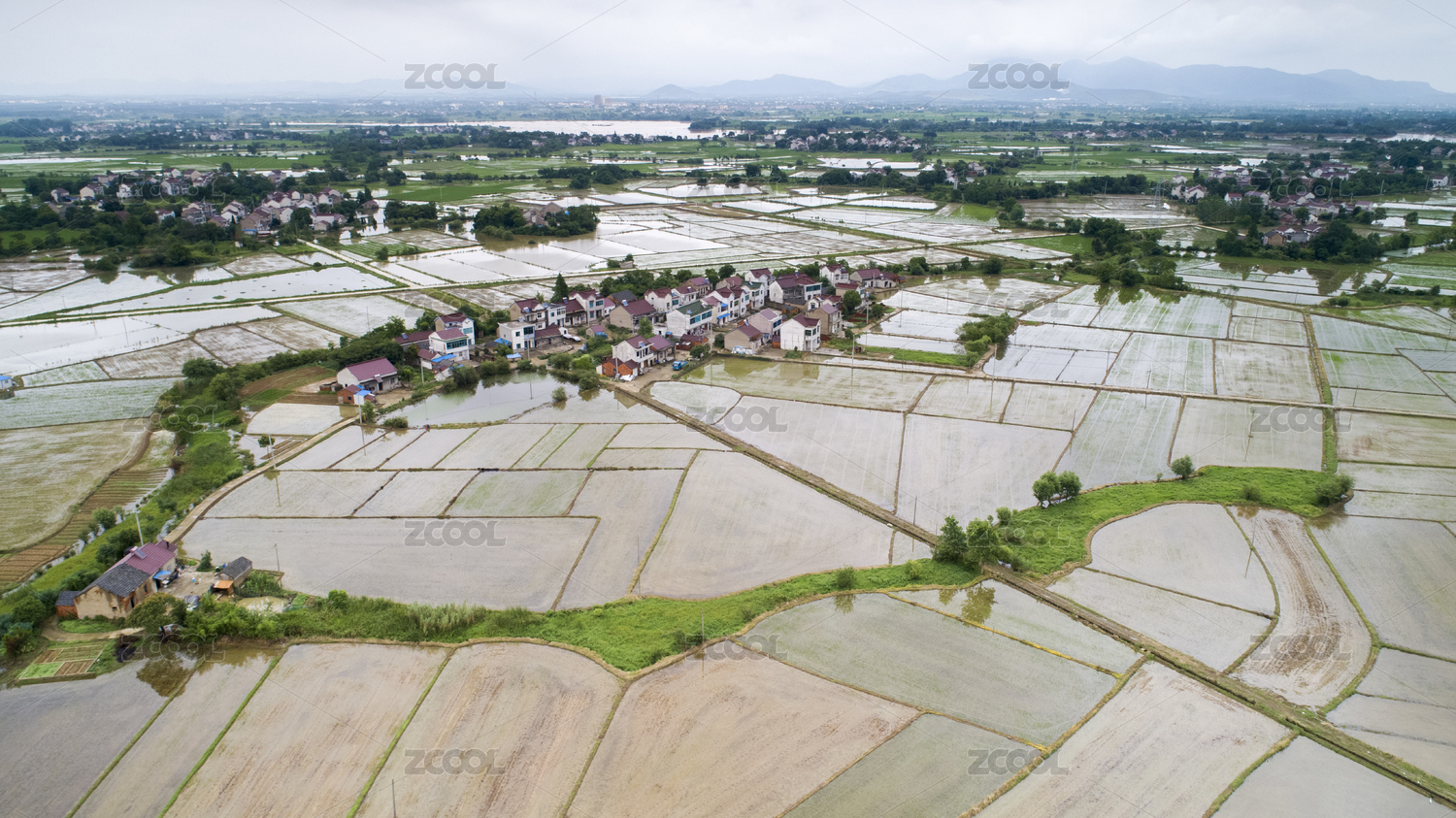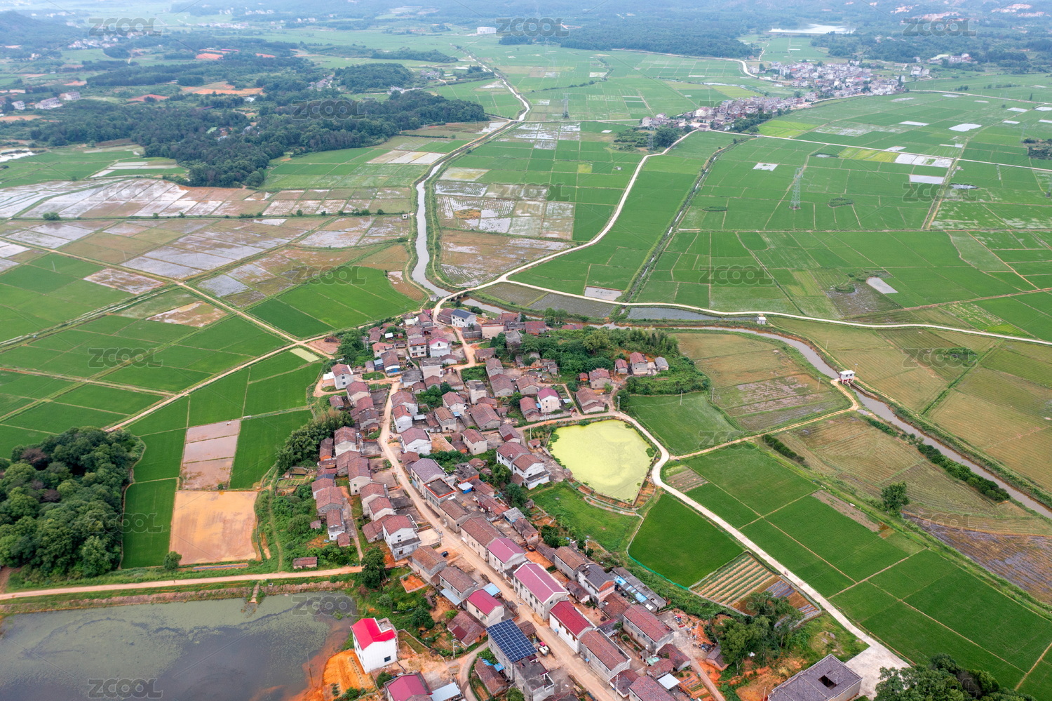 航拍中国安徽宣城郎溪县建平镇夏日雨后田园