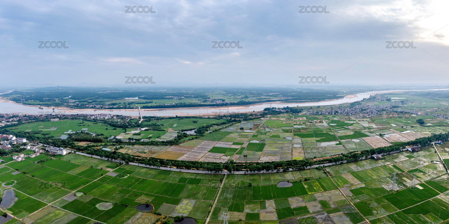 航拍中国安徽省郎溪县现代农业示范区夕阳下的田园风光