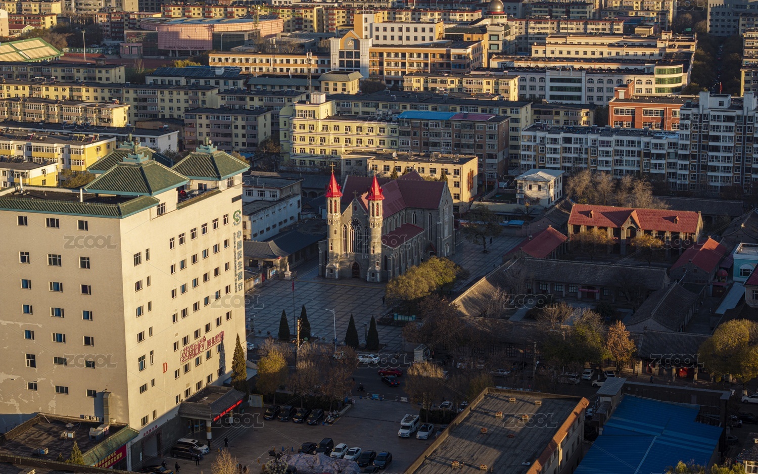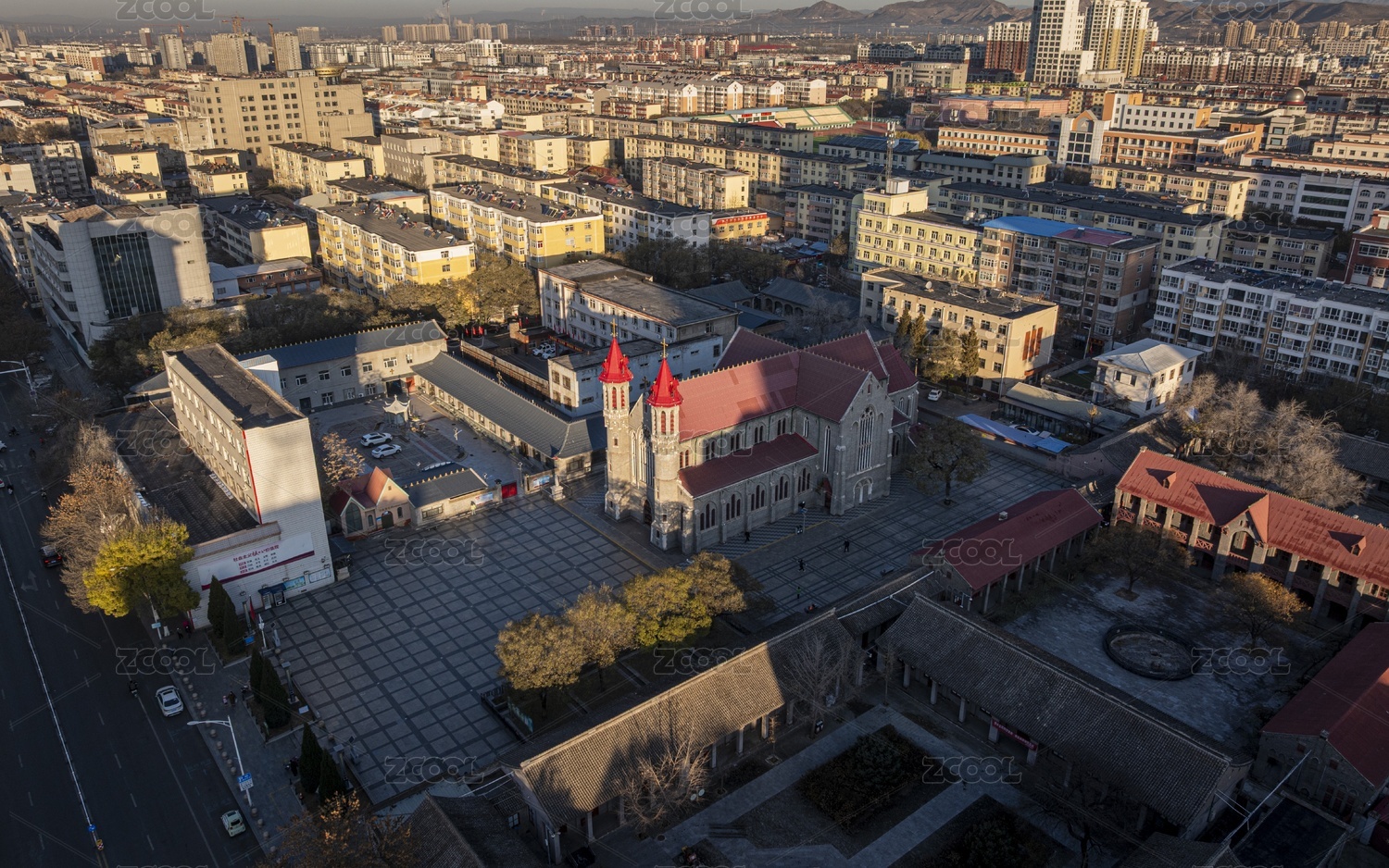 河北省张家口市宣化区宣化古城天主教堂航拍