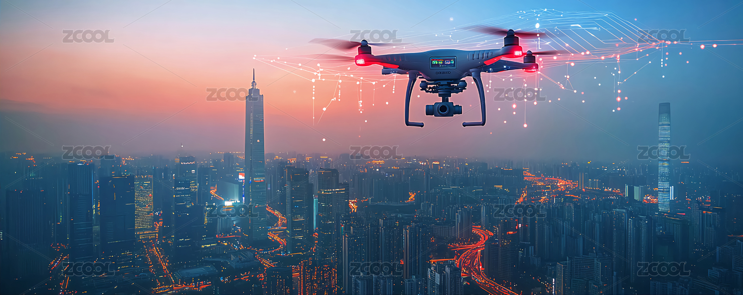 科技城市上空的无人机