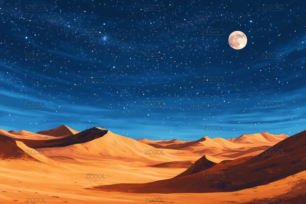 沙漠,夜景,沙子,夜晚,星空,月亮,沙丘,自然,风光,极端