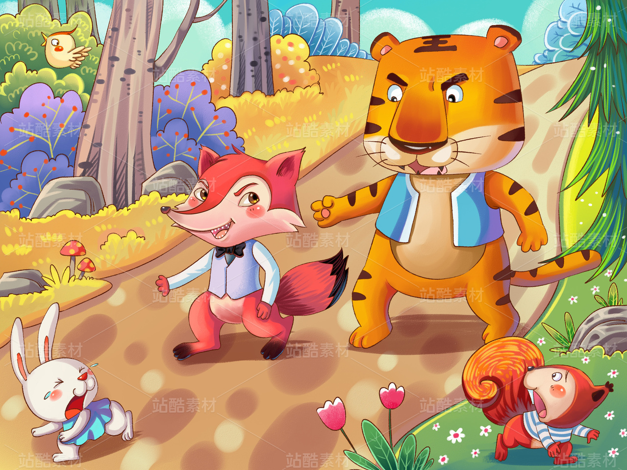 狐假虎威老虎狐狸野猪梅花鹿兔子