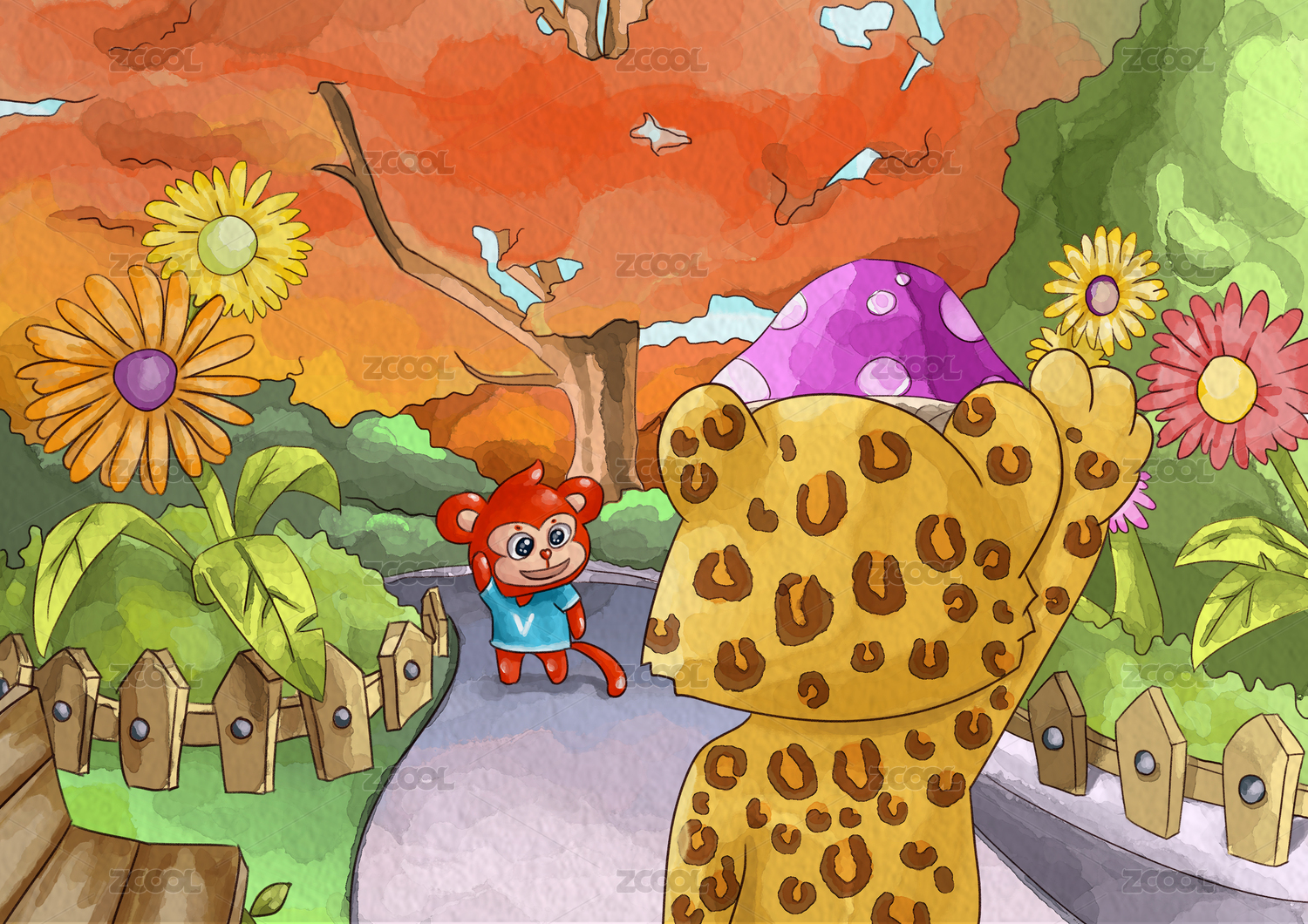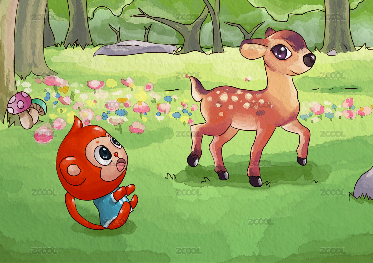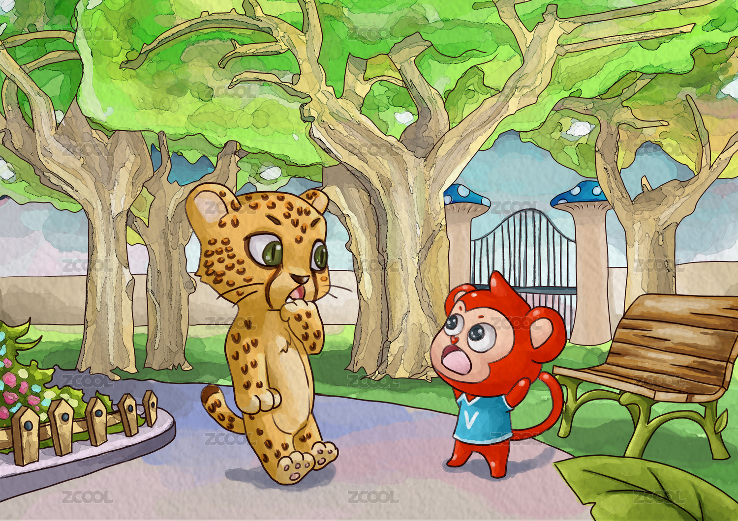 森林,猴子,动物,水彩,插画,儿童插画,童话