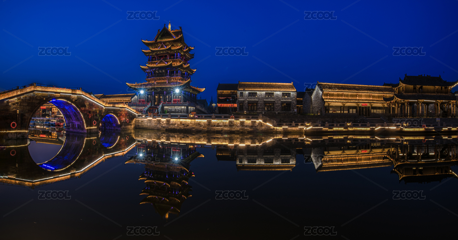 黄龙溪廊桥的夜景,中国四川省成都市黄龙溪古镇