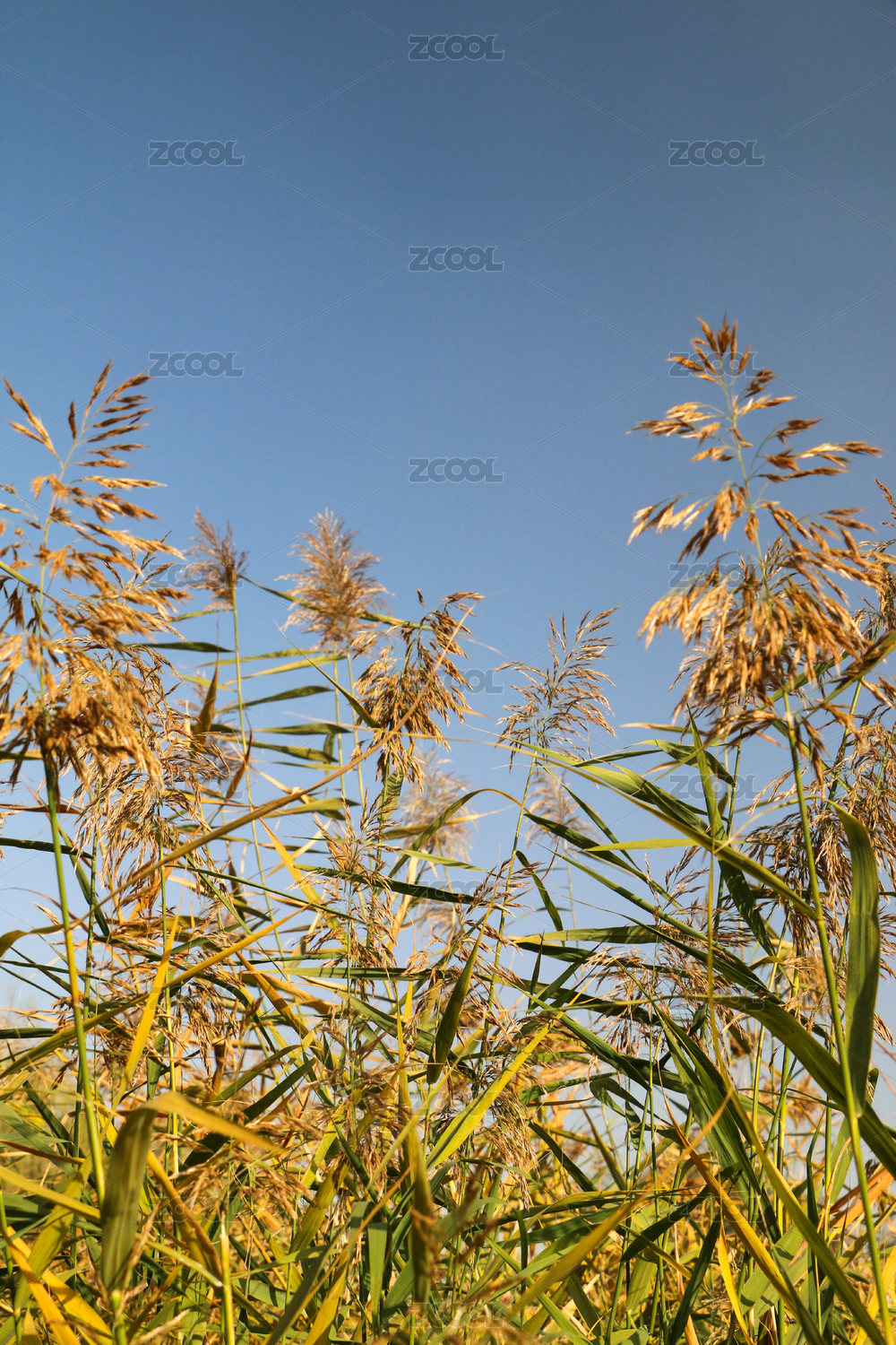 芦苇,植物,草本,黄色,穗,摇曳,风吹,飘荡,蓝天,高耸
