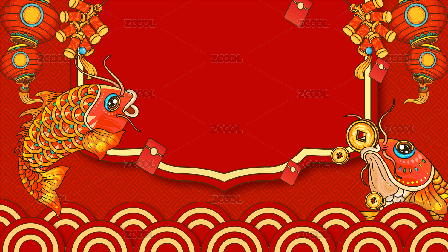 龙年,红色,背景,标题框,文字框,鞭炮,幕布,灯笼,龙鱼,中国