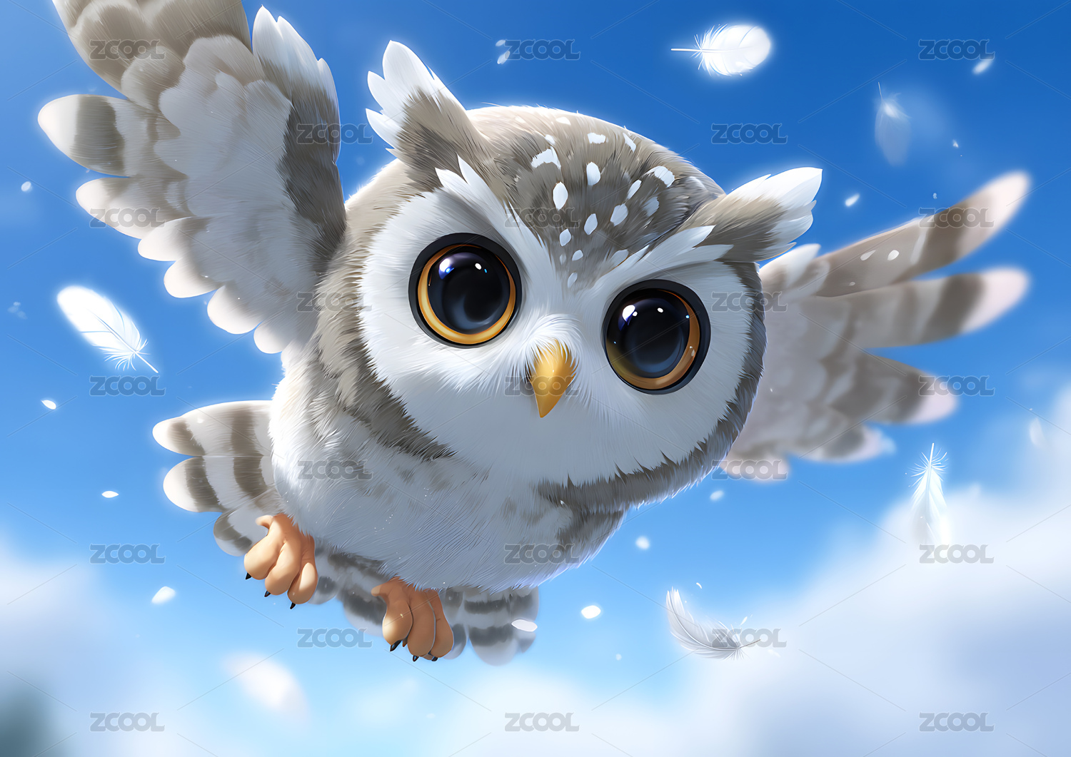 蓝天下一只卡通猫头鹰