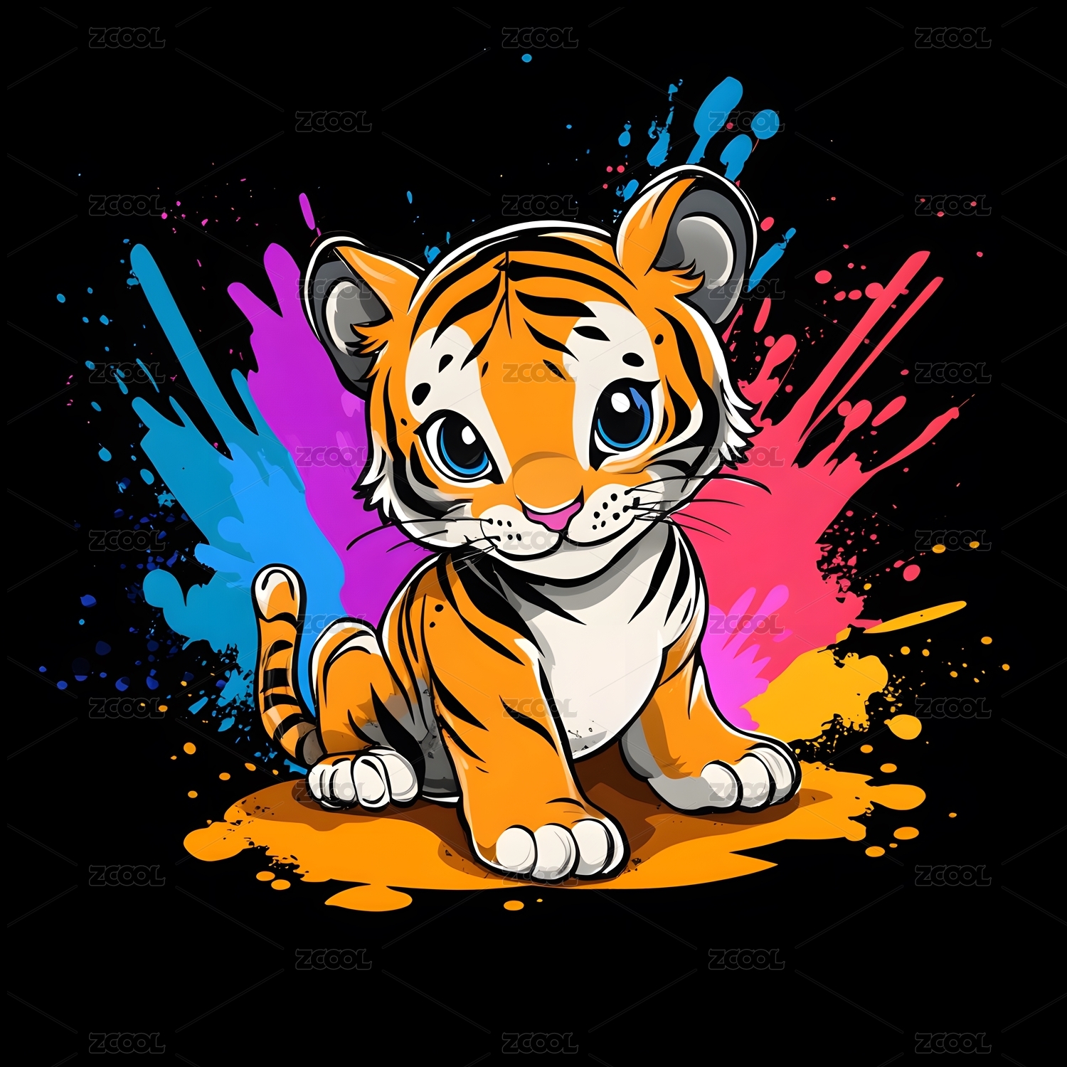 老虎,虎头,虎脑,卡通,土堆,兽王,野生,头像,油漆,喷溅