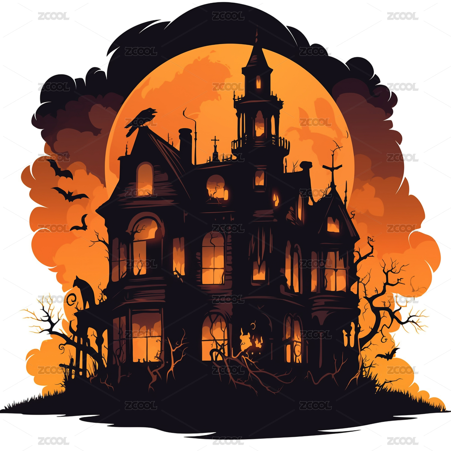 古堡,夜景,万圣节,南瓜灯,蝙蝠,幽灵,月光,森林,神秘,黑暗