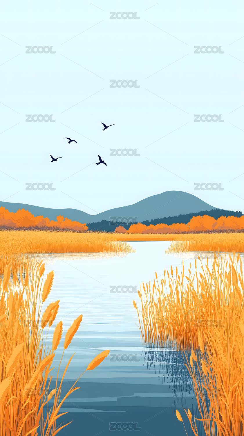 白鹭,寒露,节气,鸟,湖,觅食,扁平,插画,二十四节气,鸟类