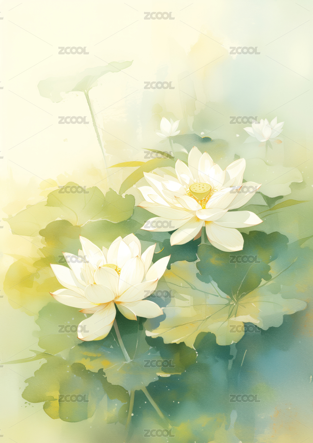 水彩风格白色莲花画作