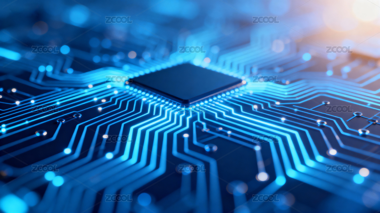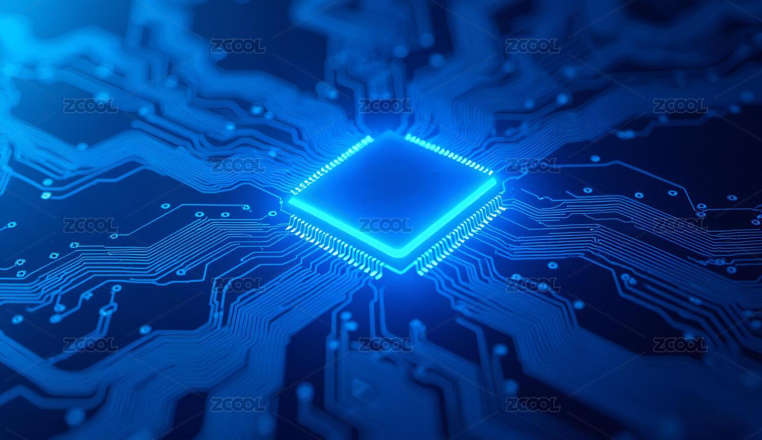 蓝色光效芯片科技感电路板
