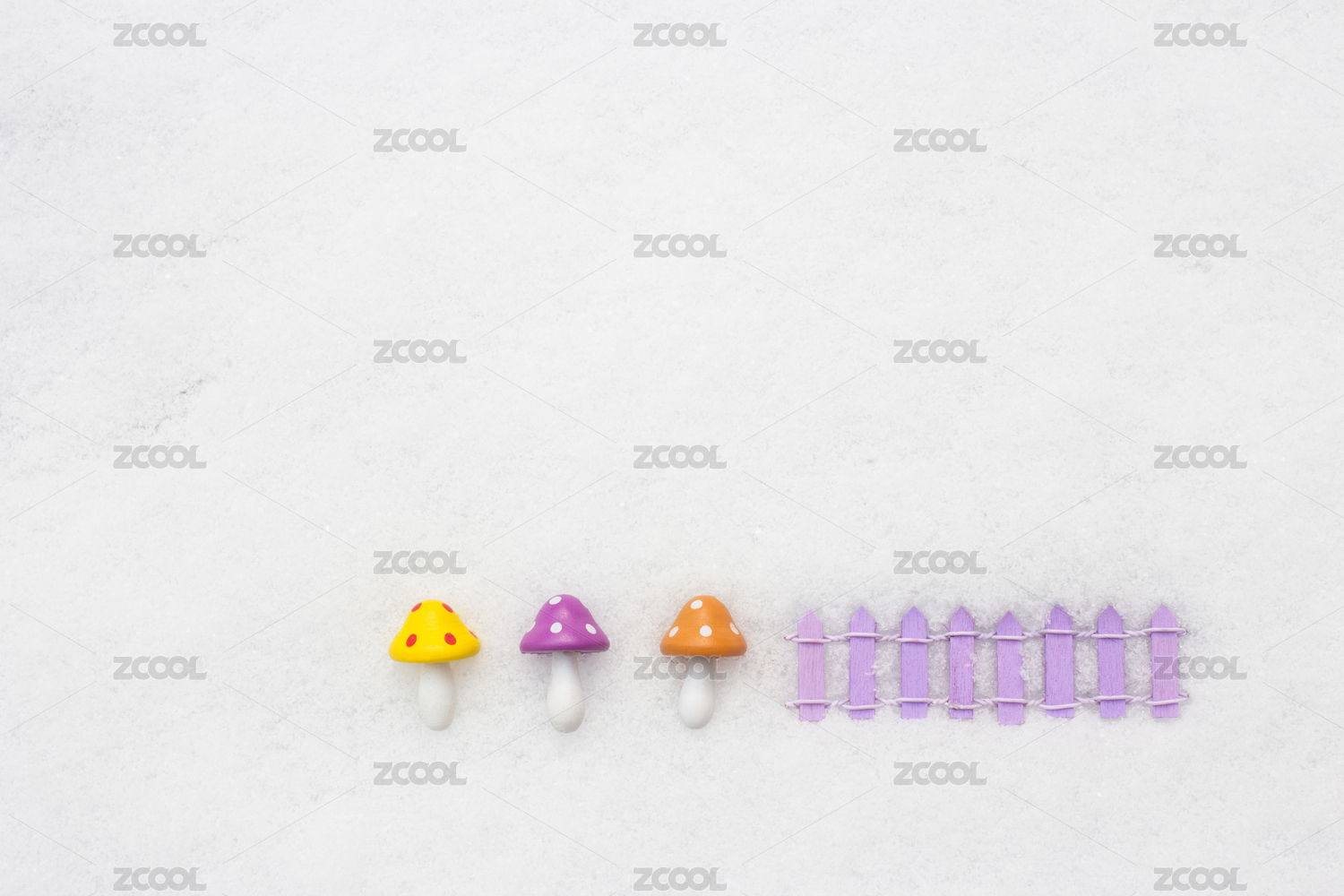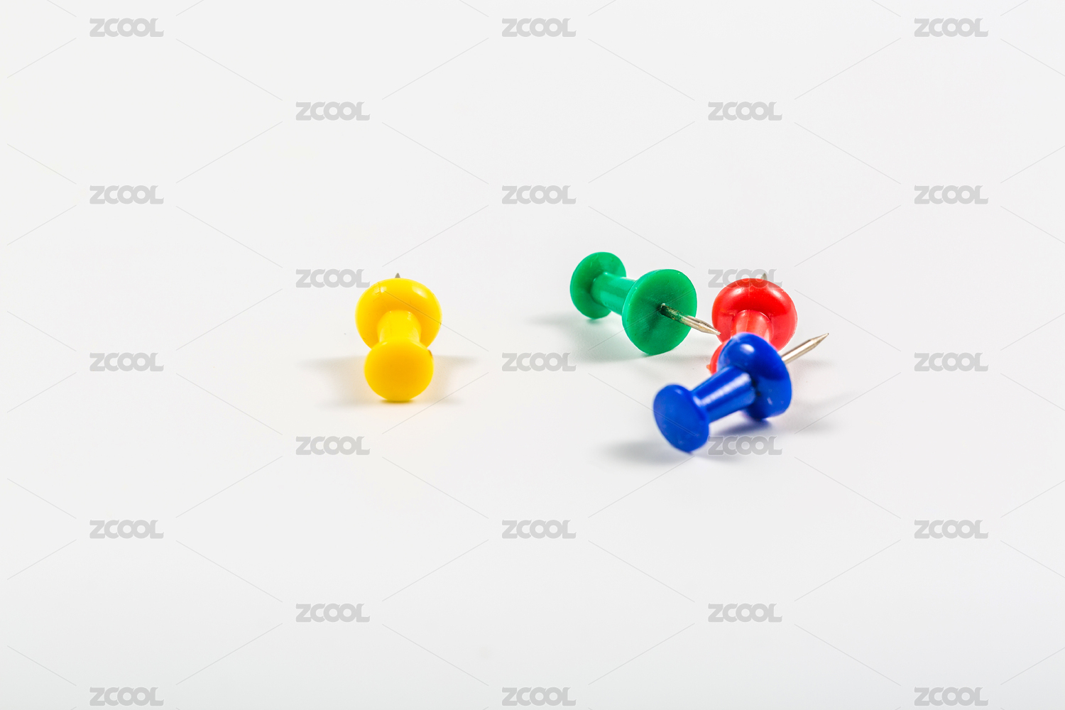 白底上倒立排列的一堆彩色塑料螺丝与铆钉