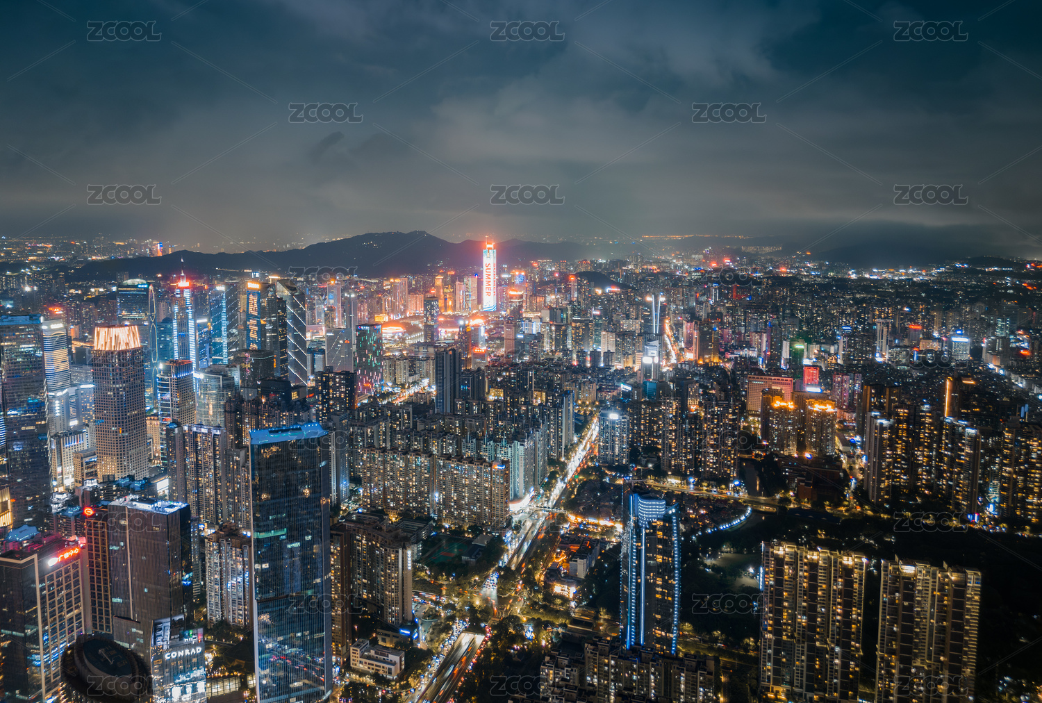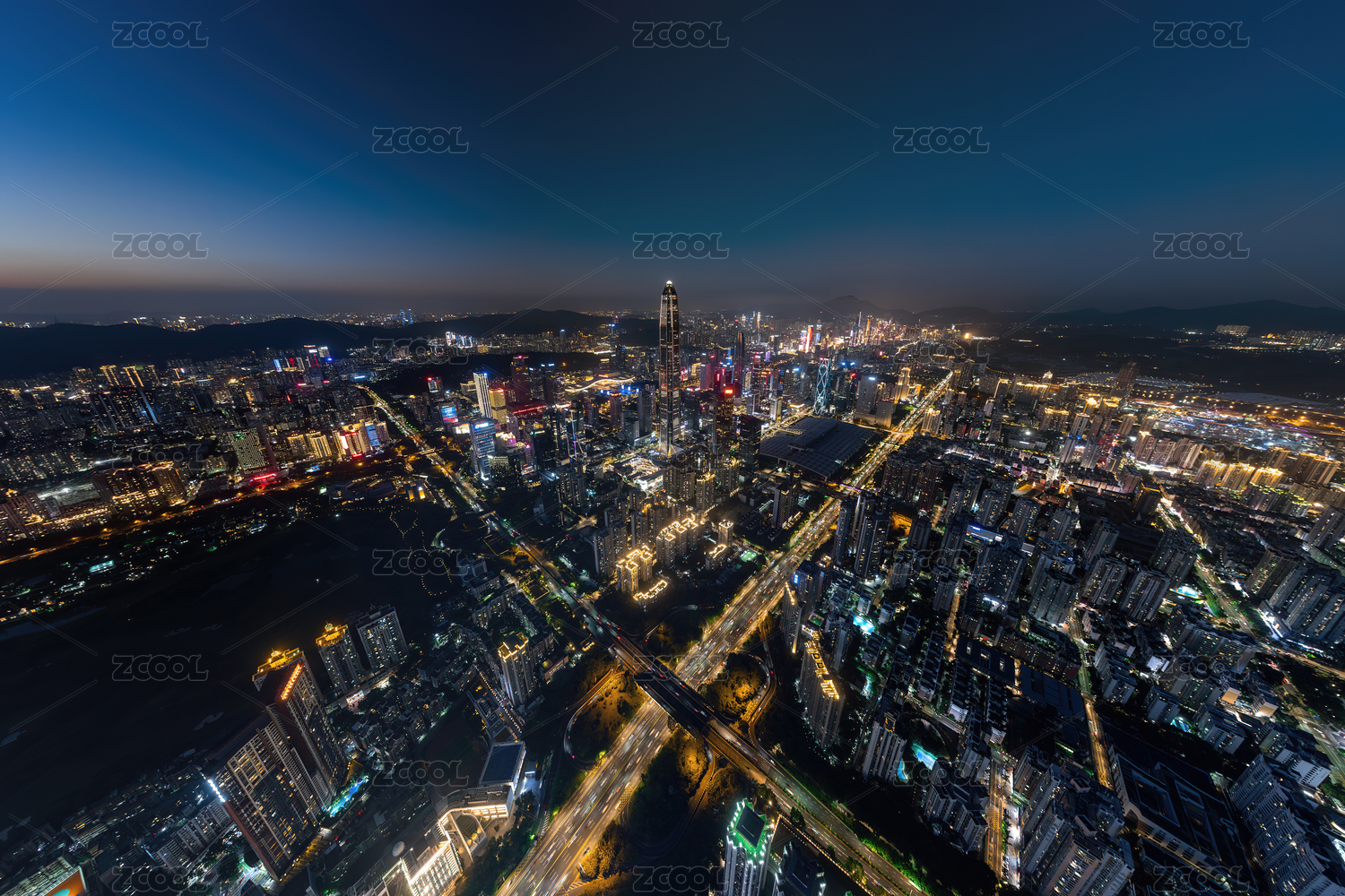 中国广东深圳福田中心区城市建筑风光夜景