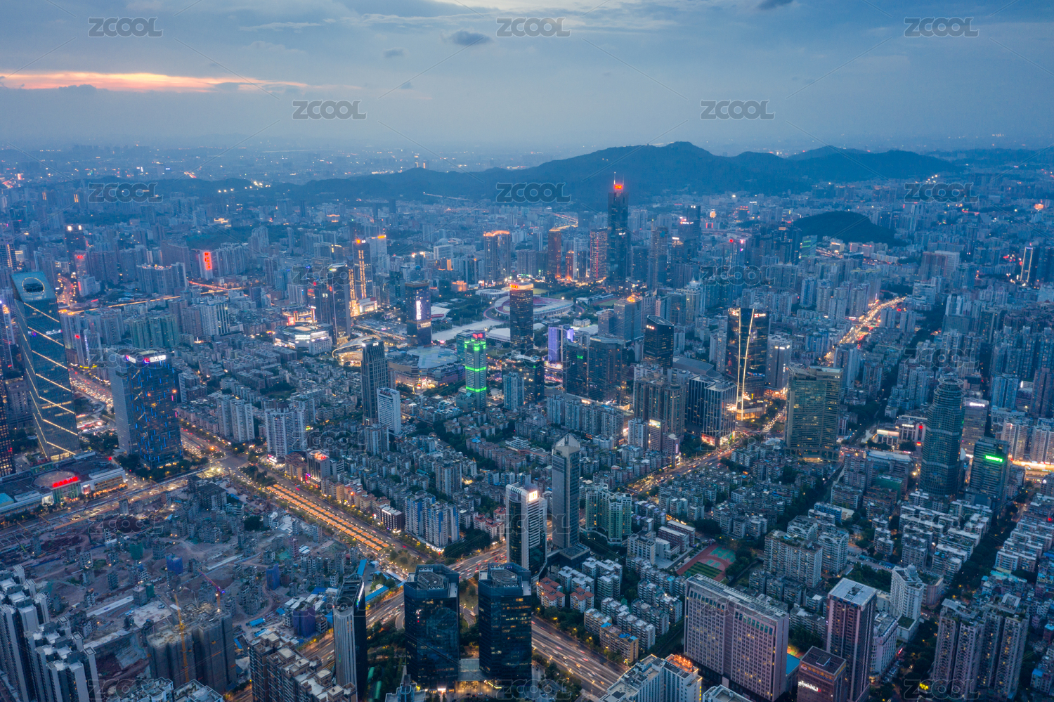 中国深圳城市天际线建筑群高楼大厦夜景