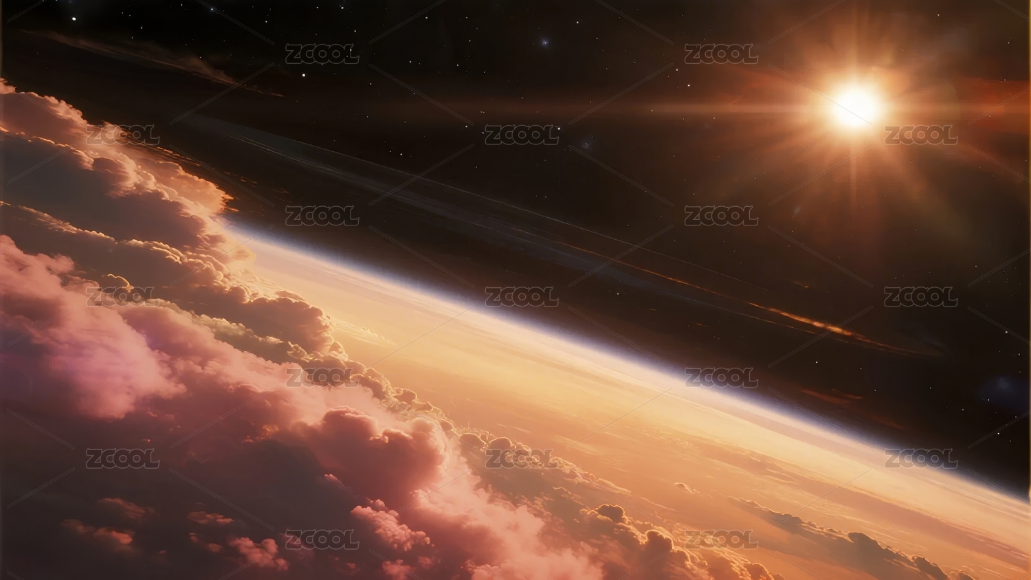 地球日出,云层与星空的壮丽景象