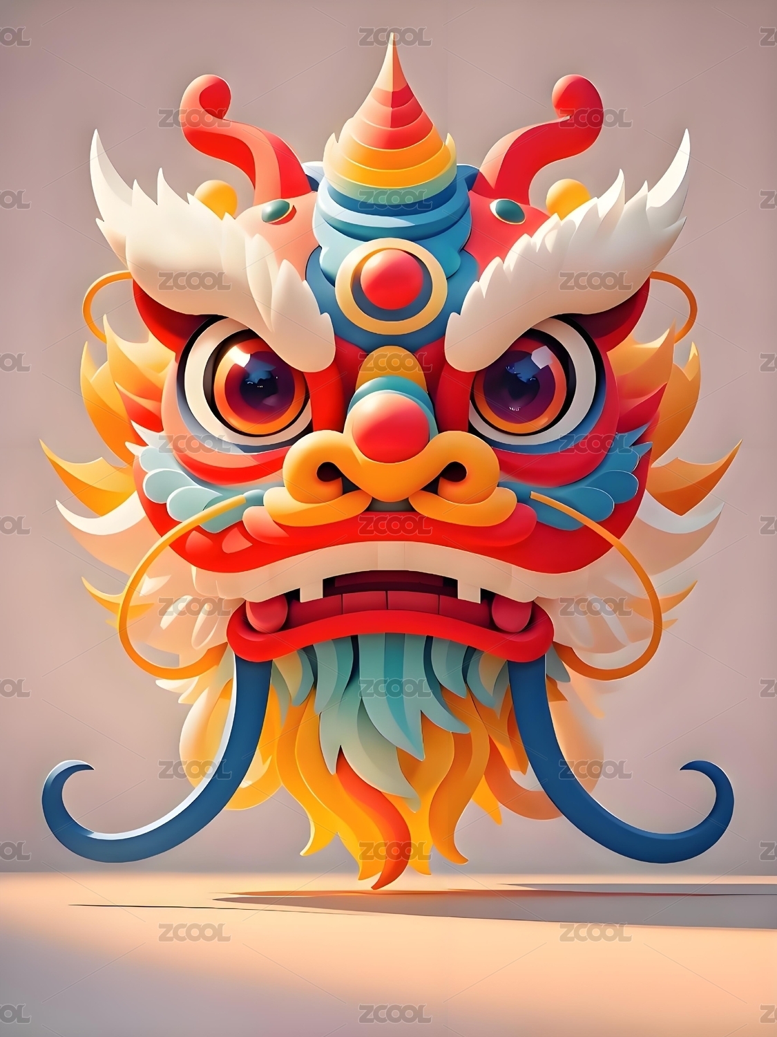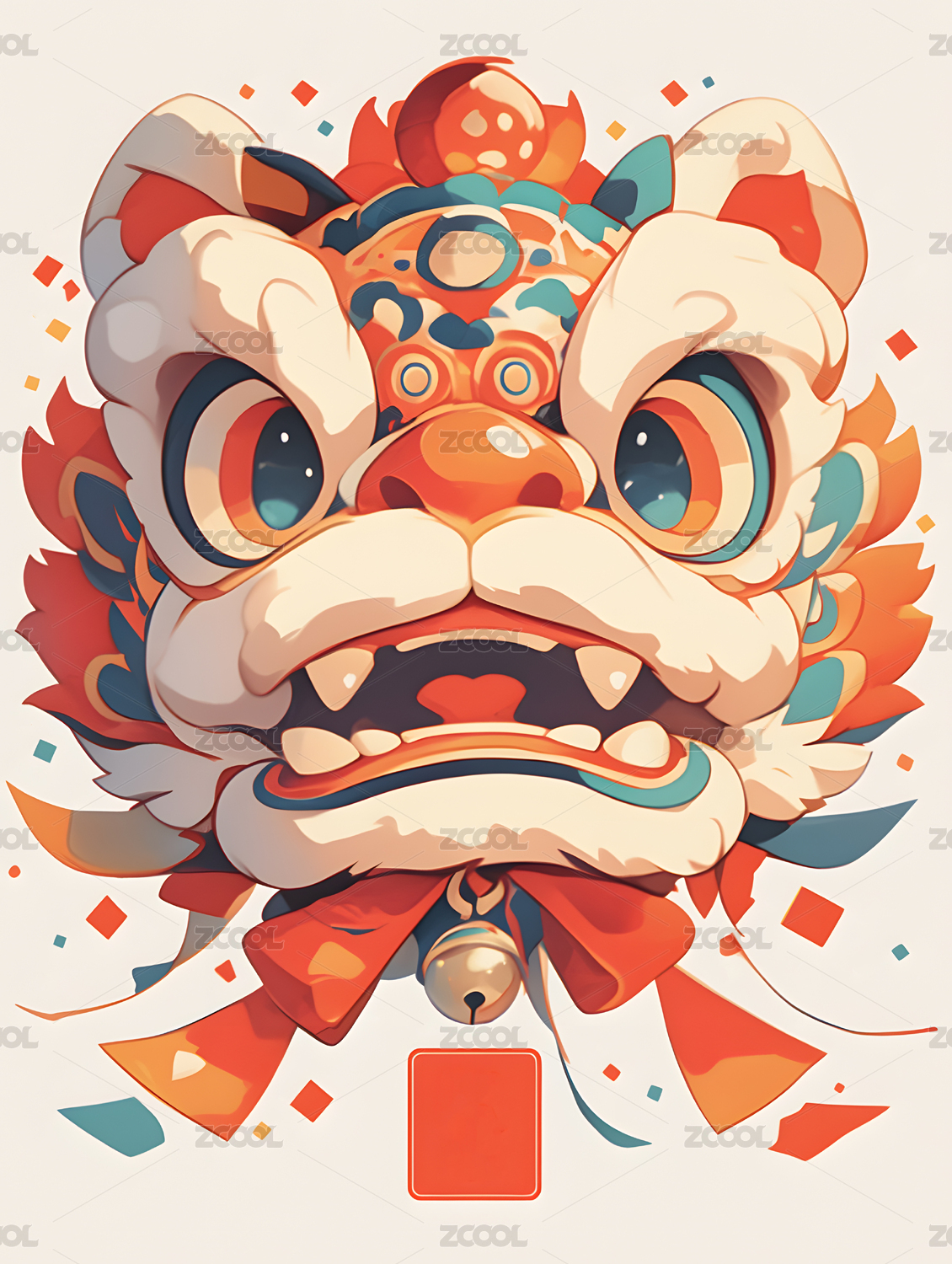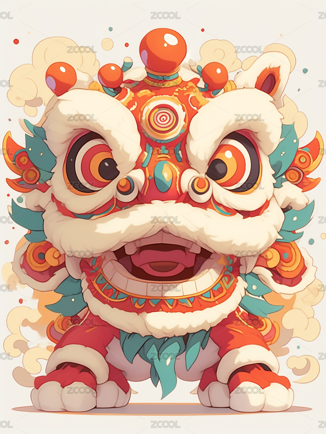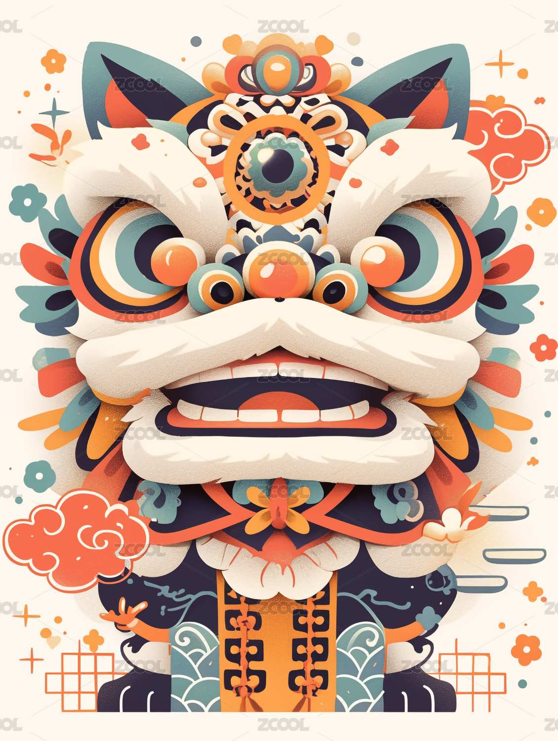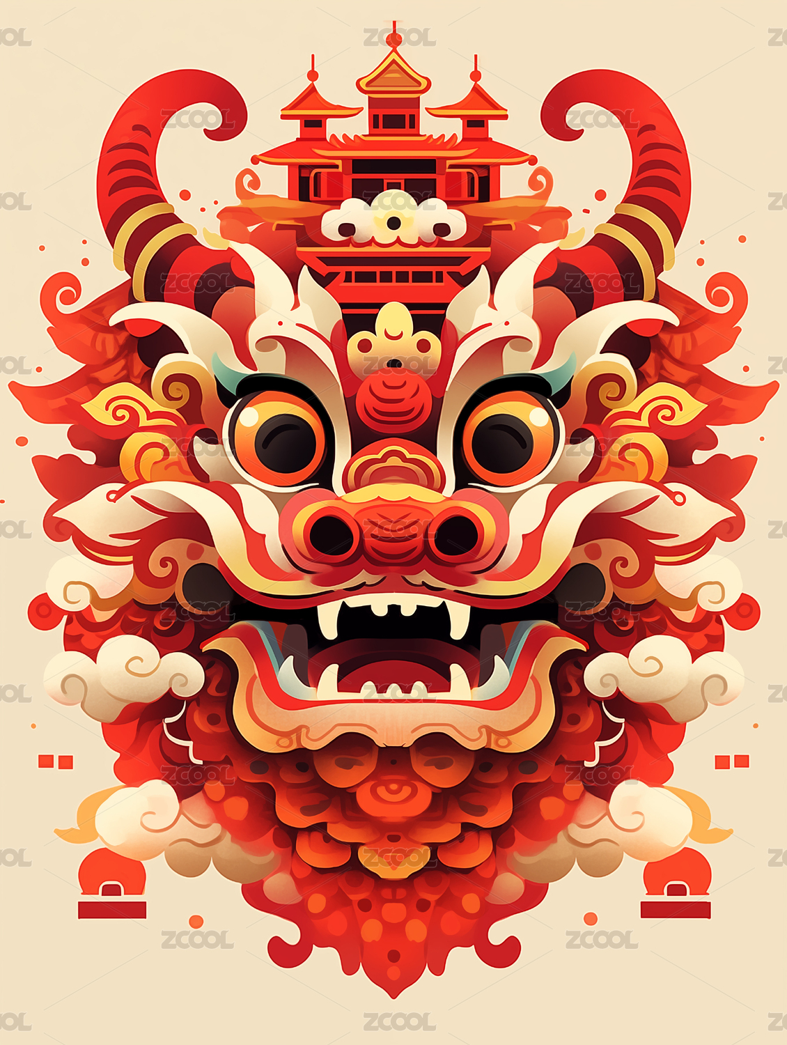 扁平化新年国潮风格醒狮喜庆氛围插画