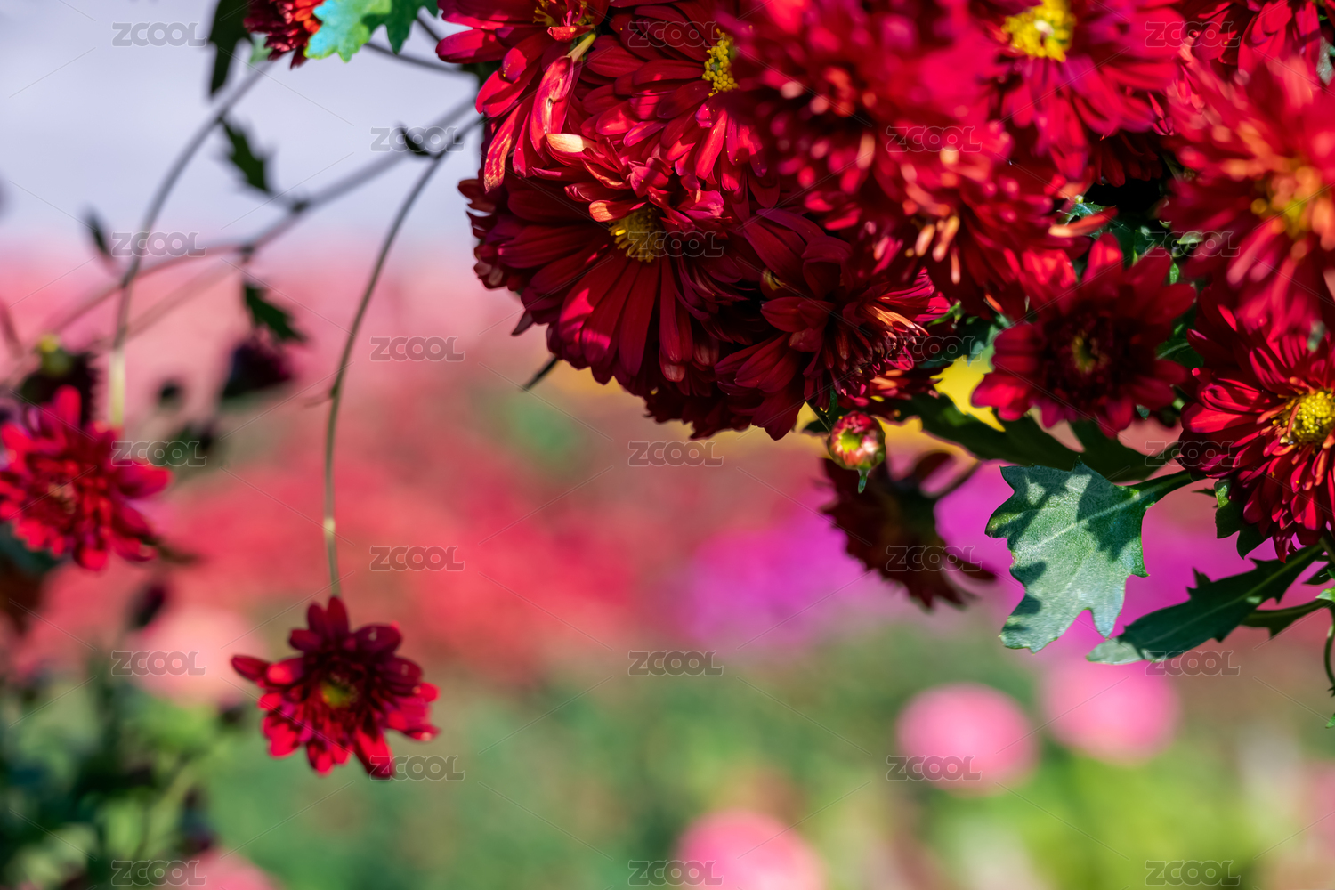 花儿,红花,黄花,蓝天,白云,盛开,花海