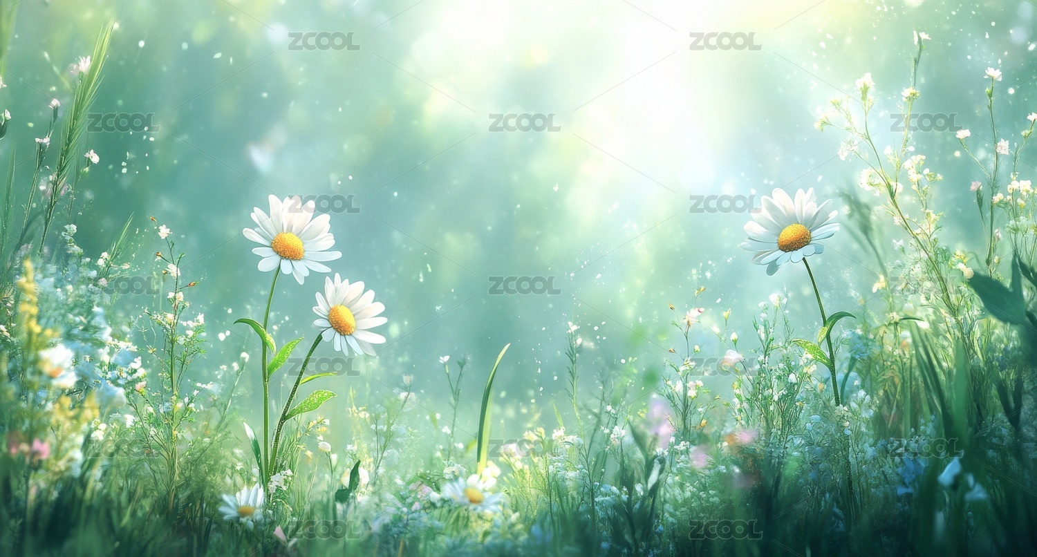 色彩柔和的白色小花在绿叶间盛开,营造出恬