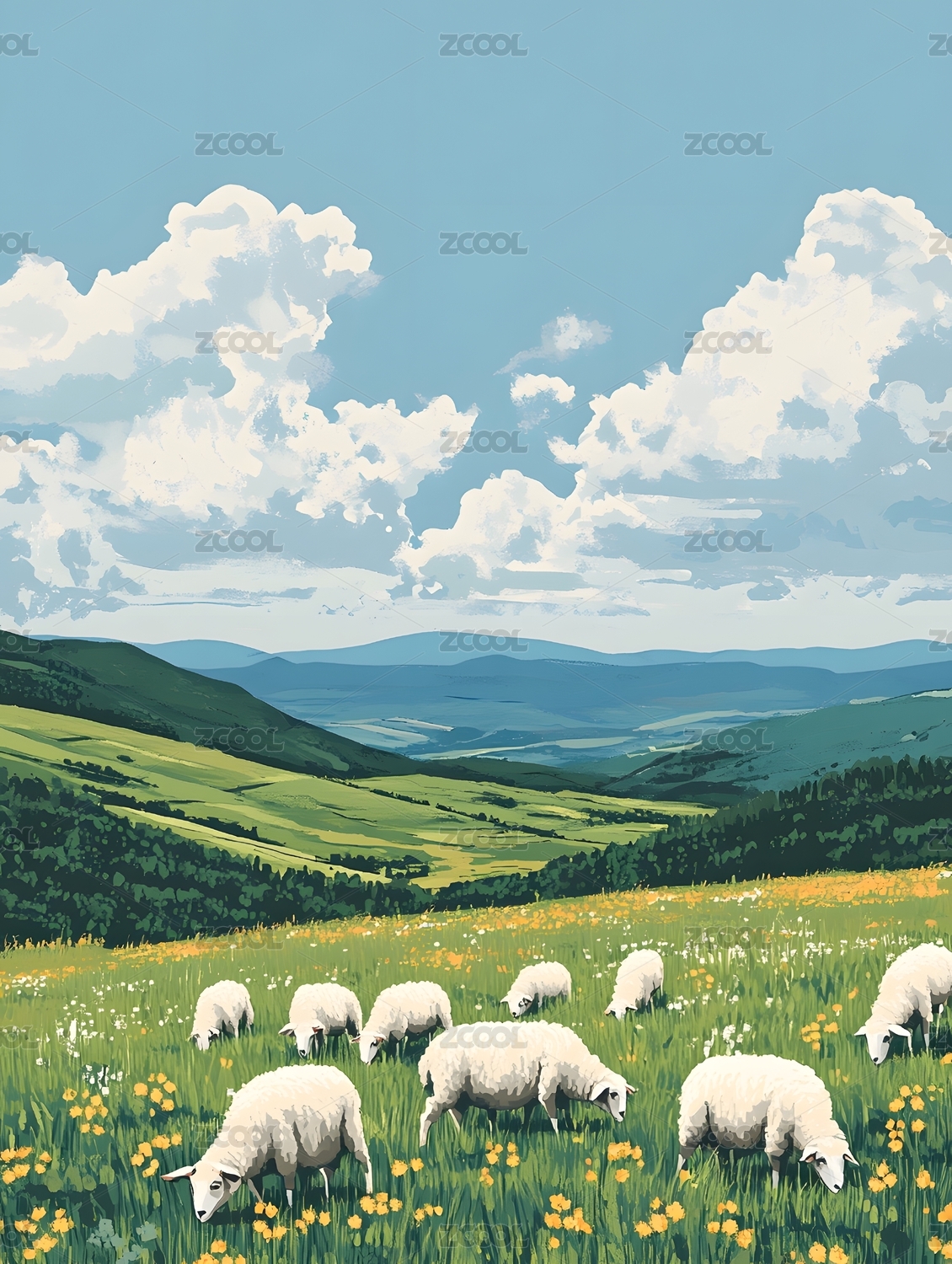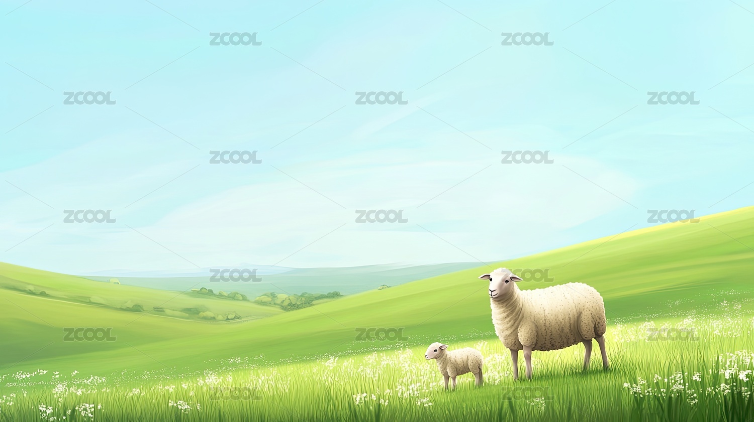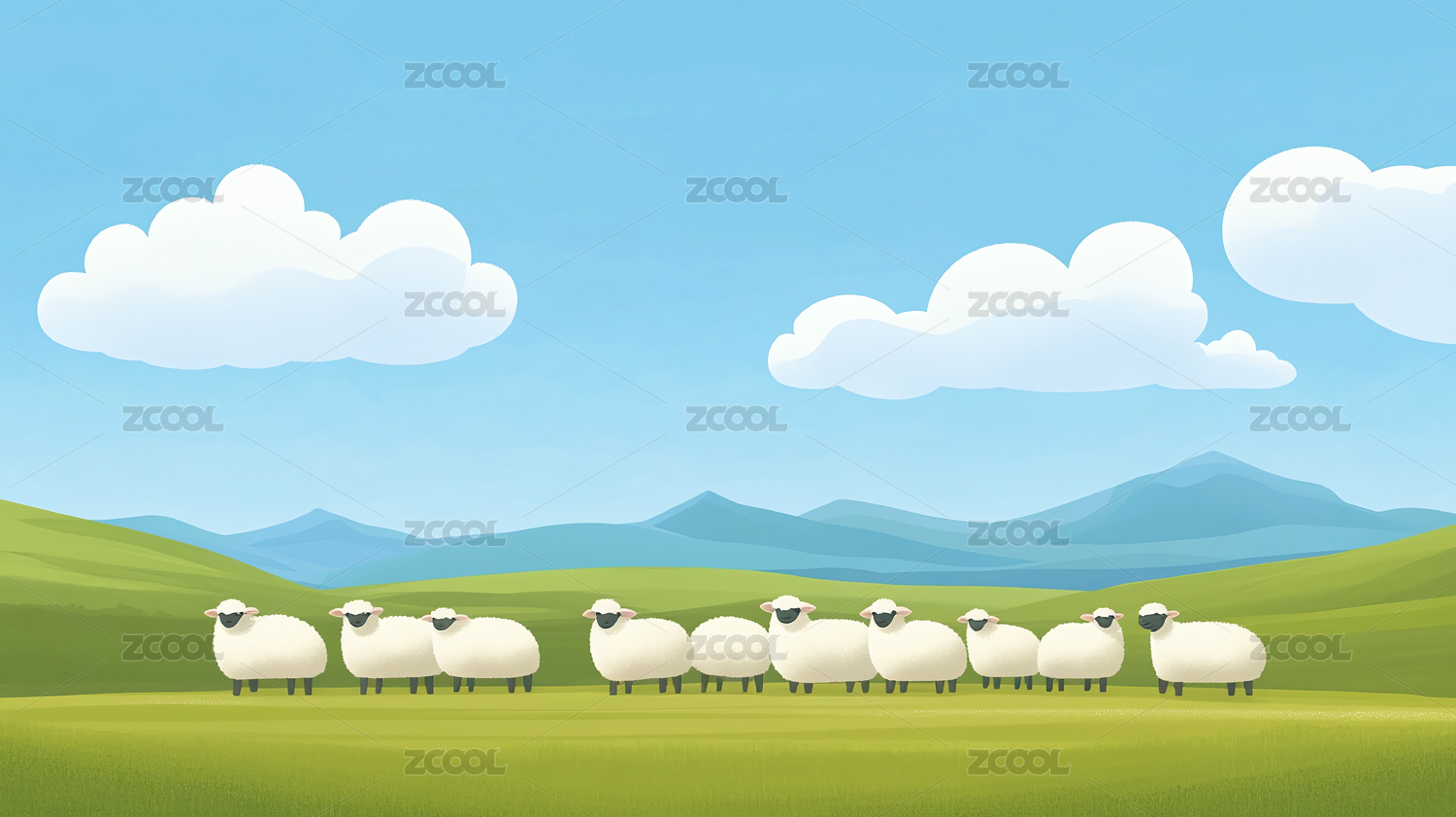 自然,生态,宁静,自然美,户外,草原,羊群,蓝天,白云,青山
