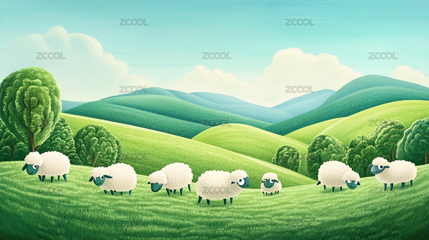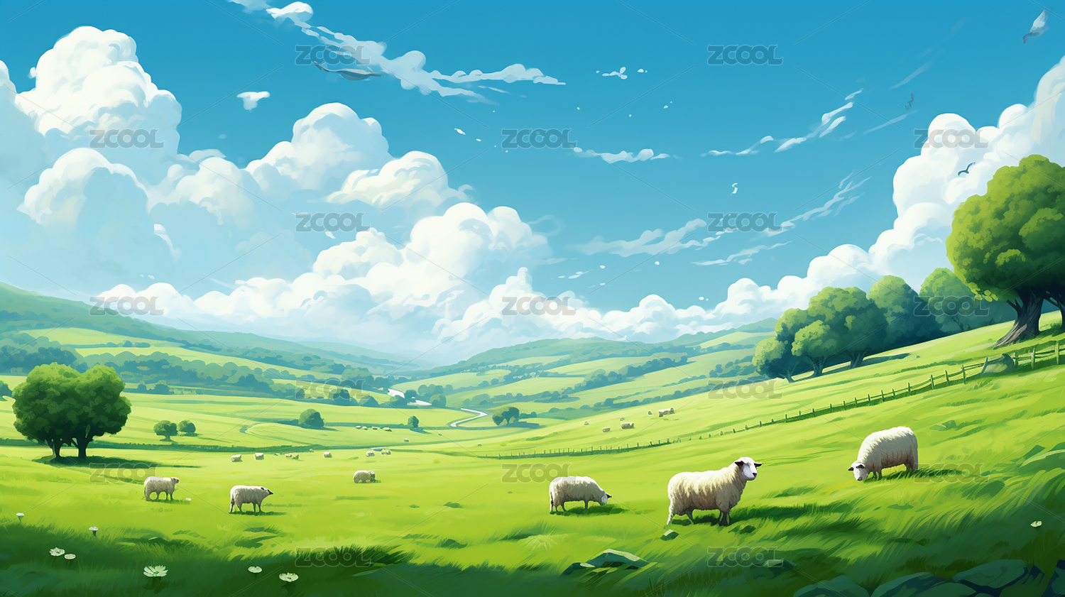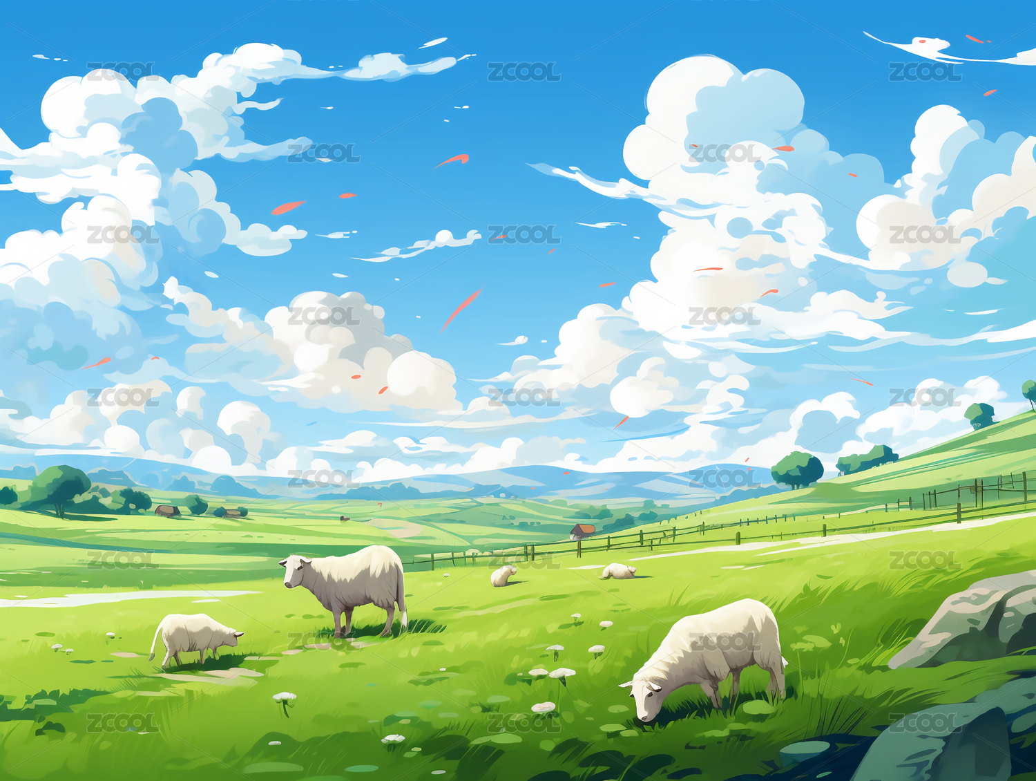 自然,生态,宁静,自然美,户外,草原,羊群,蓝天,白云,青山