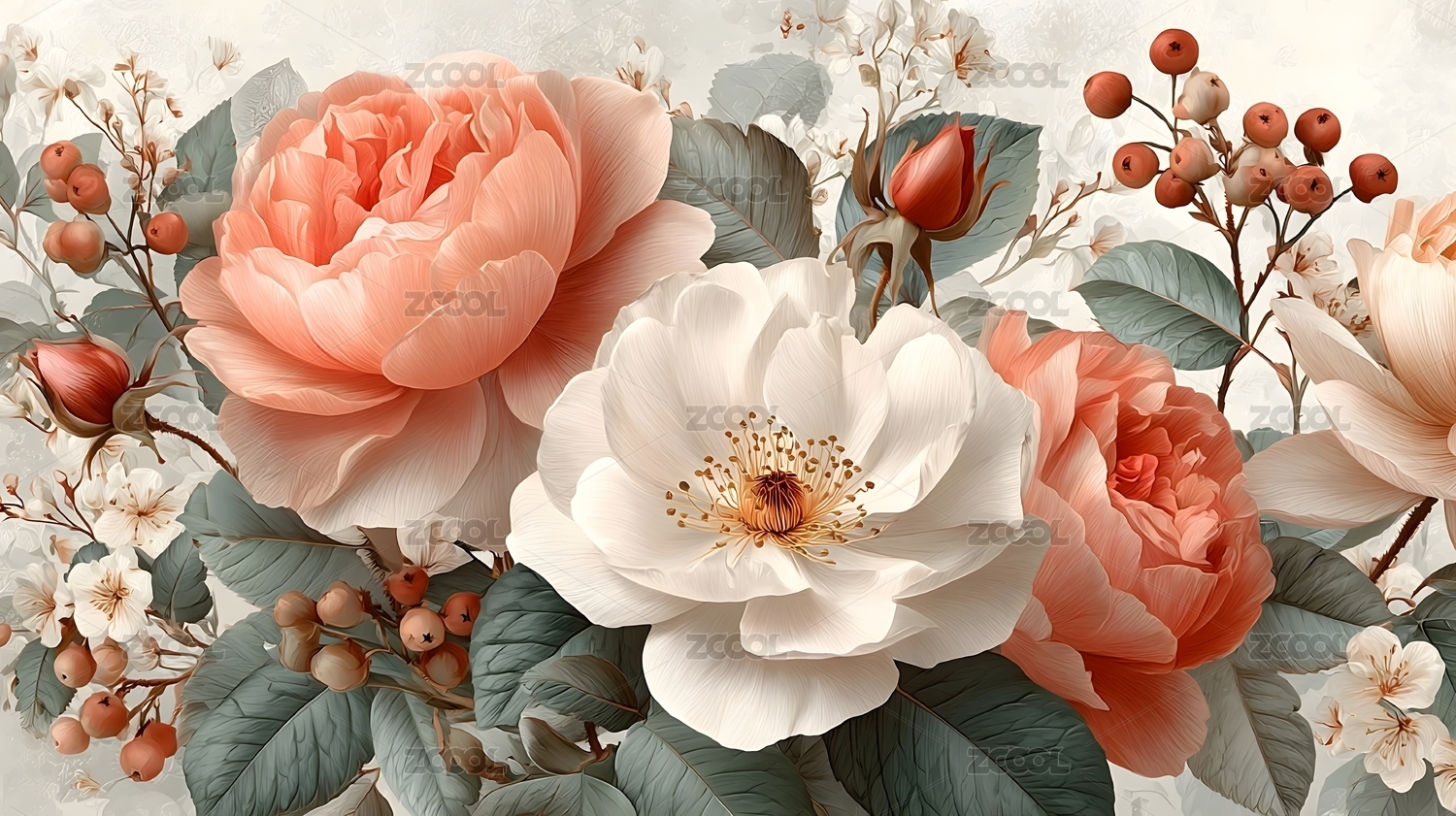 淡雅清新的牡丹花朵图案壁纸