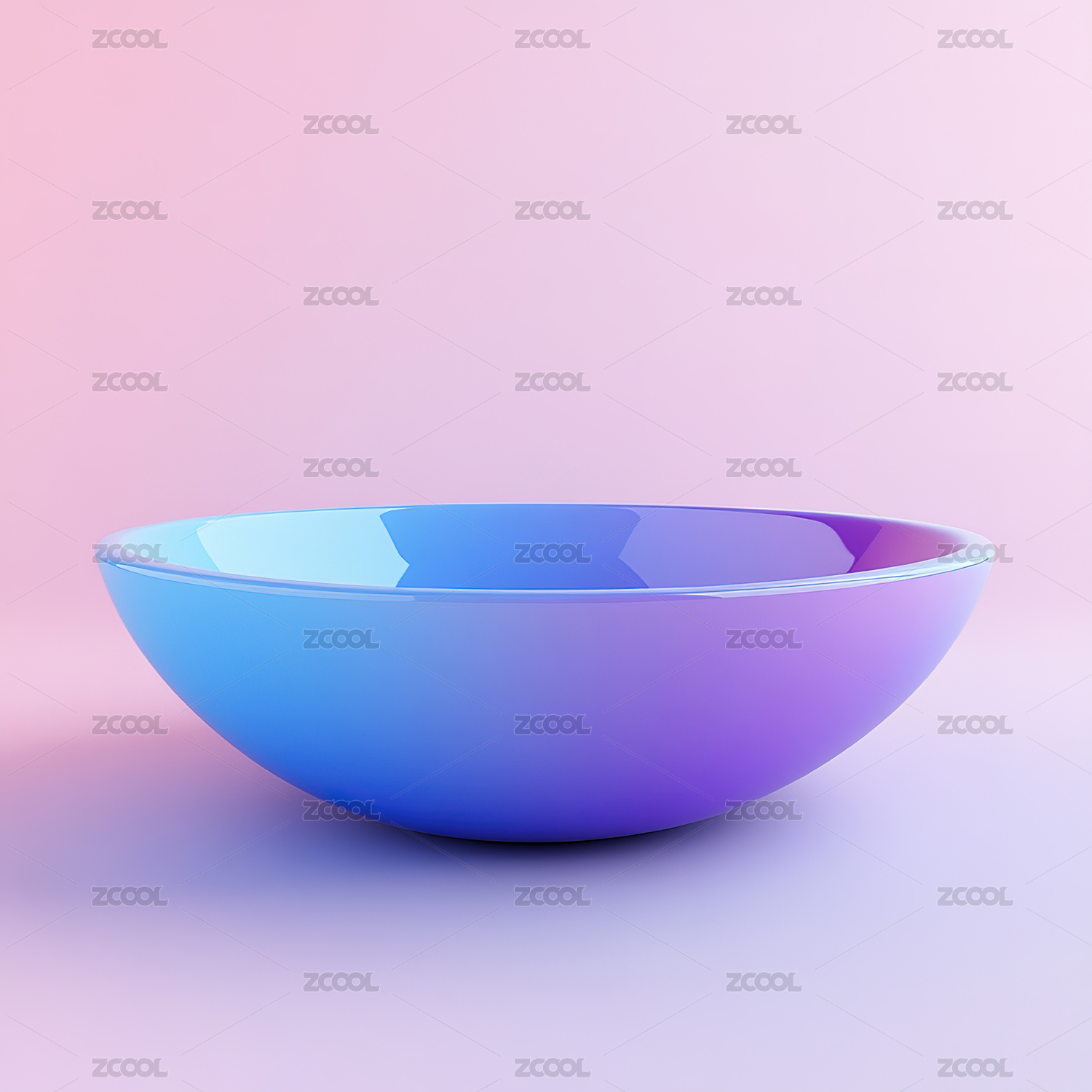 蓝色背景有一个带有黄色边缘的白色碗高清图