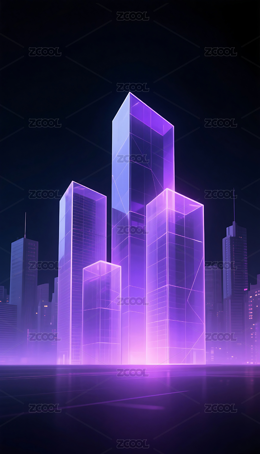 梦幻荧光色城市建筑赛博3D卡通立体插画