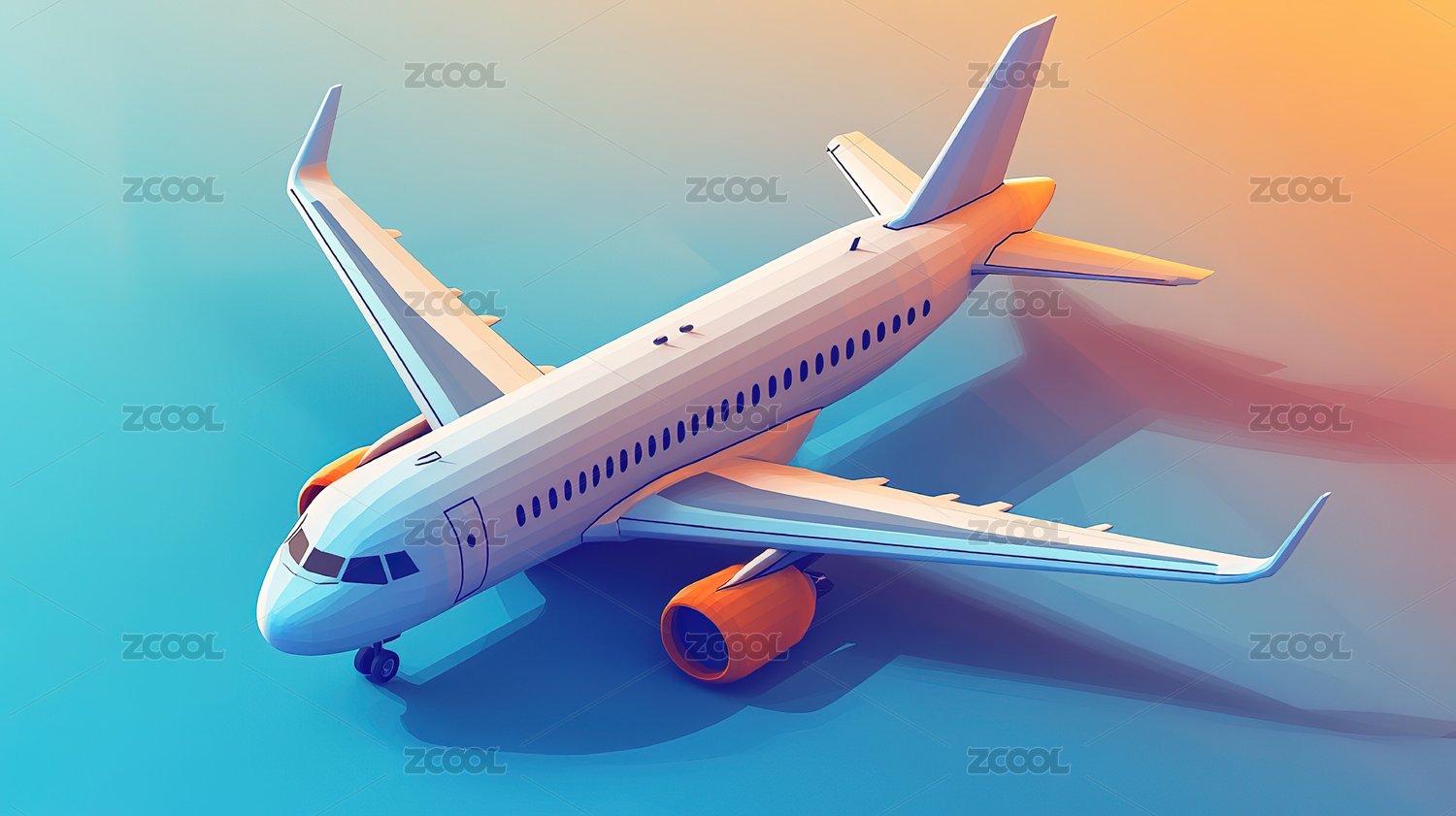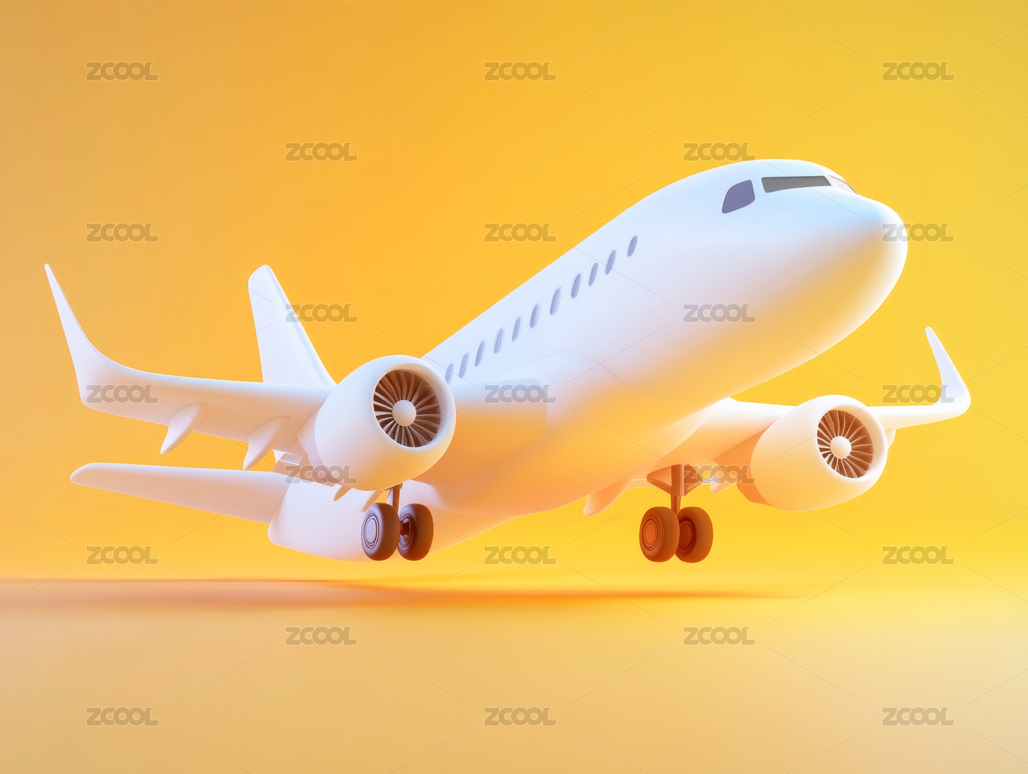 飞机,卡通,插画,3D,三维图像,可爱,插图,橙色,飞机玩具,数字插画
